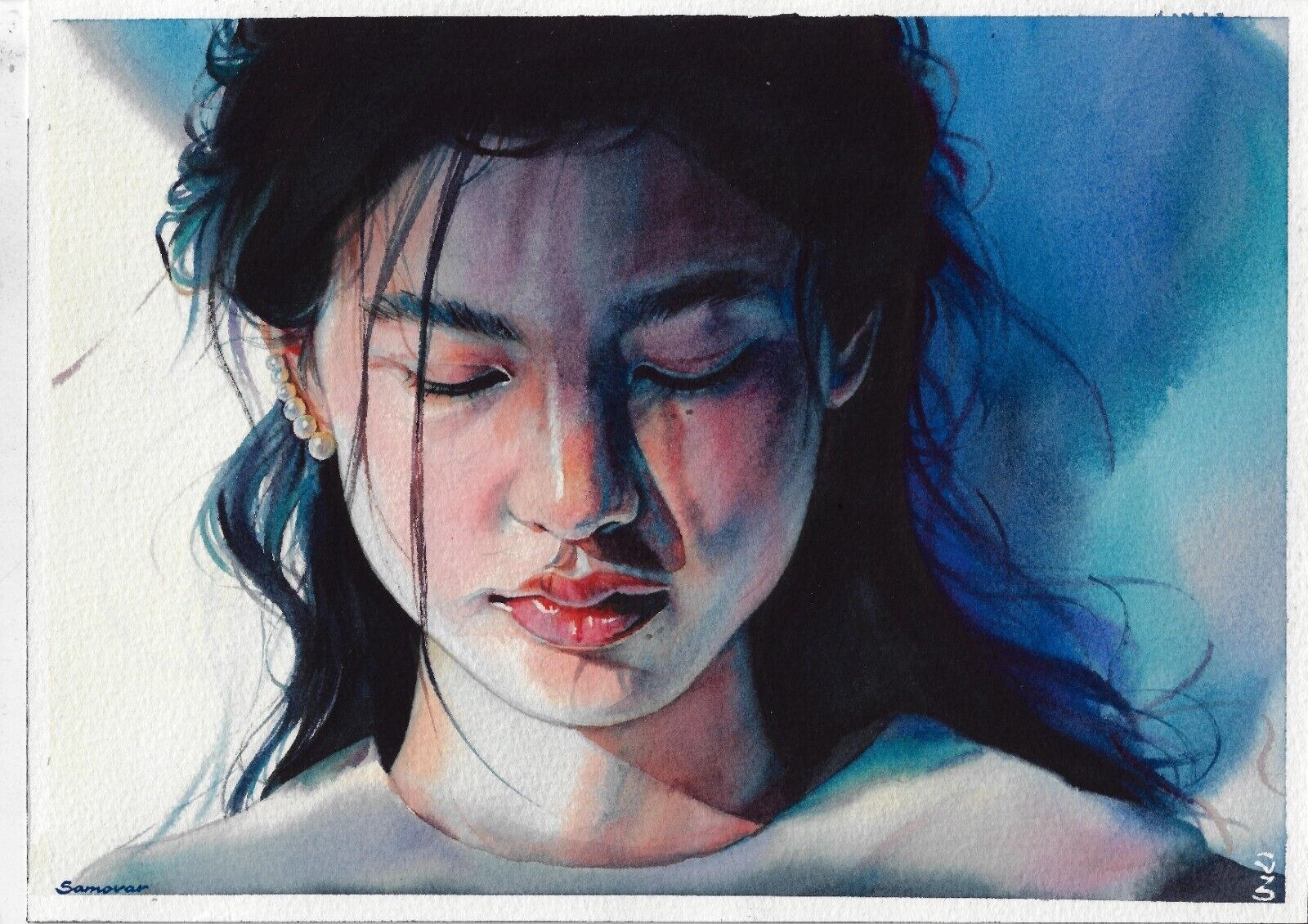 Portret kobiety : realizm , praca wykonana ręcznie przez autorkę w jednym egzemplarzu.Sygnowana w dolnym rogu.