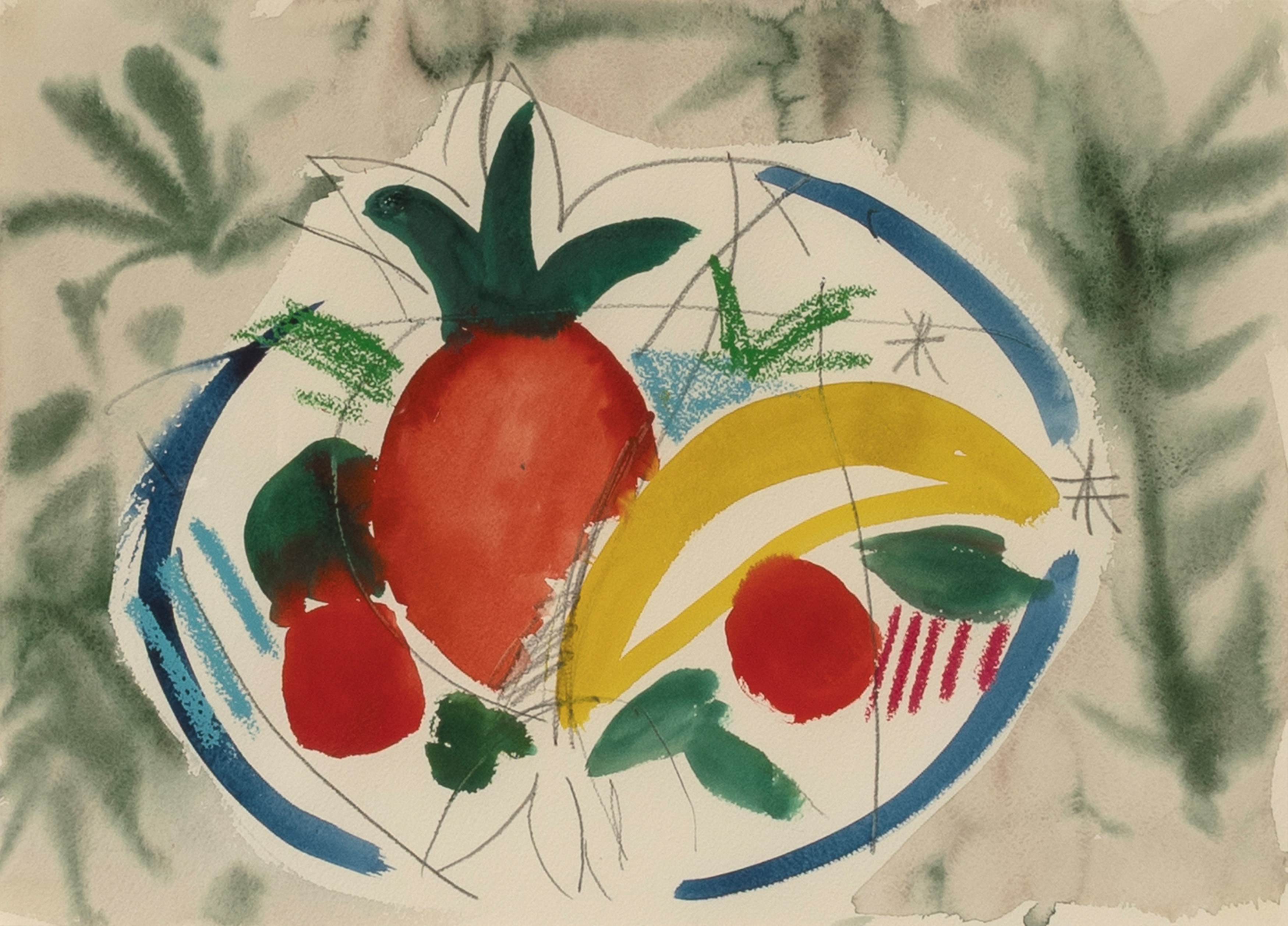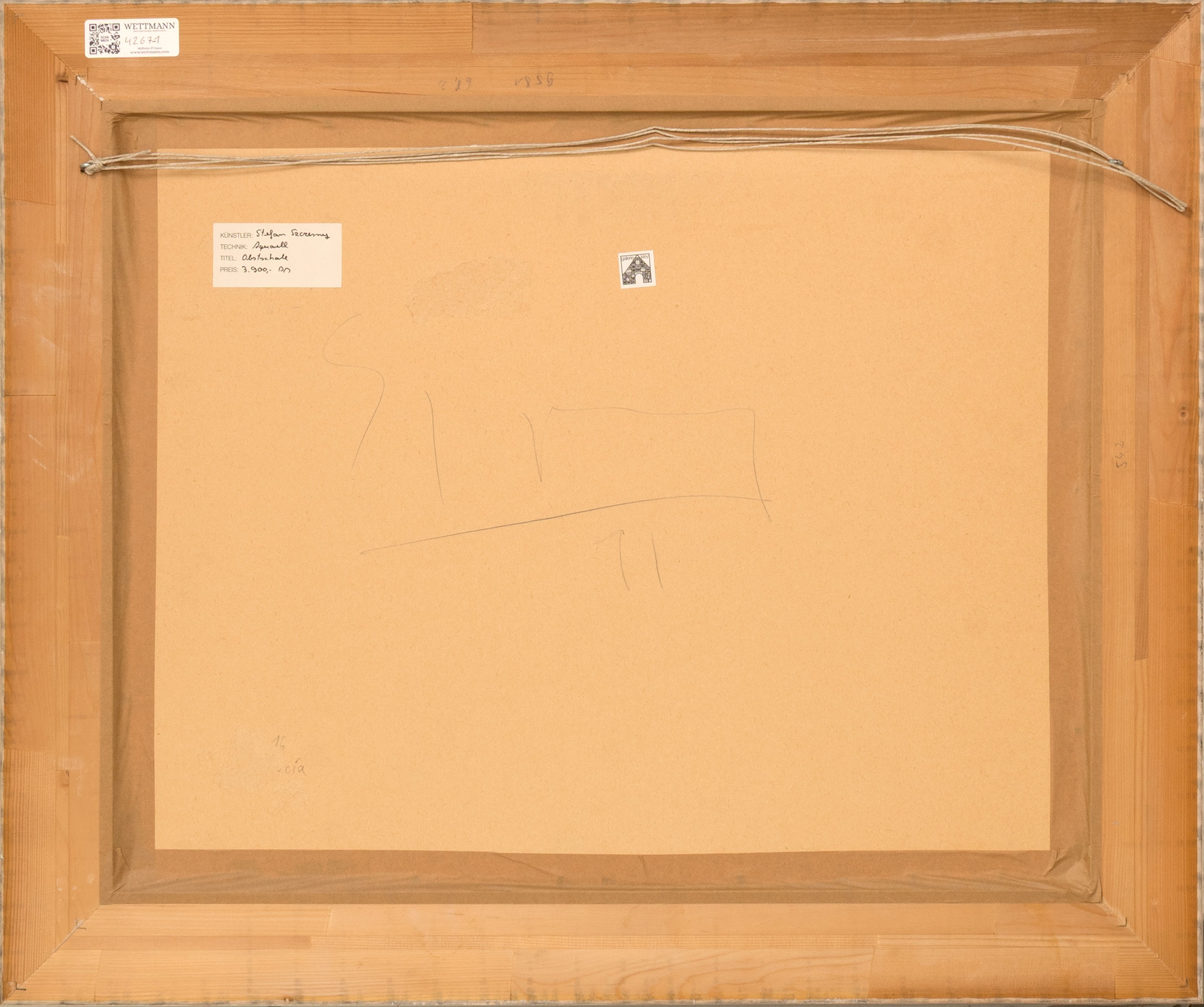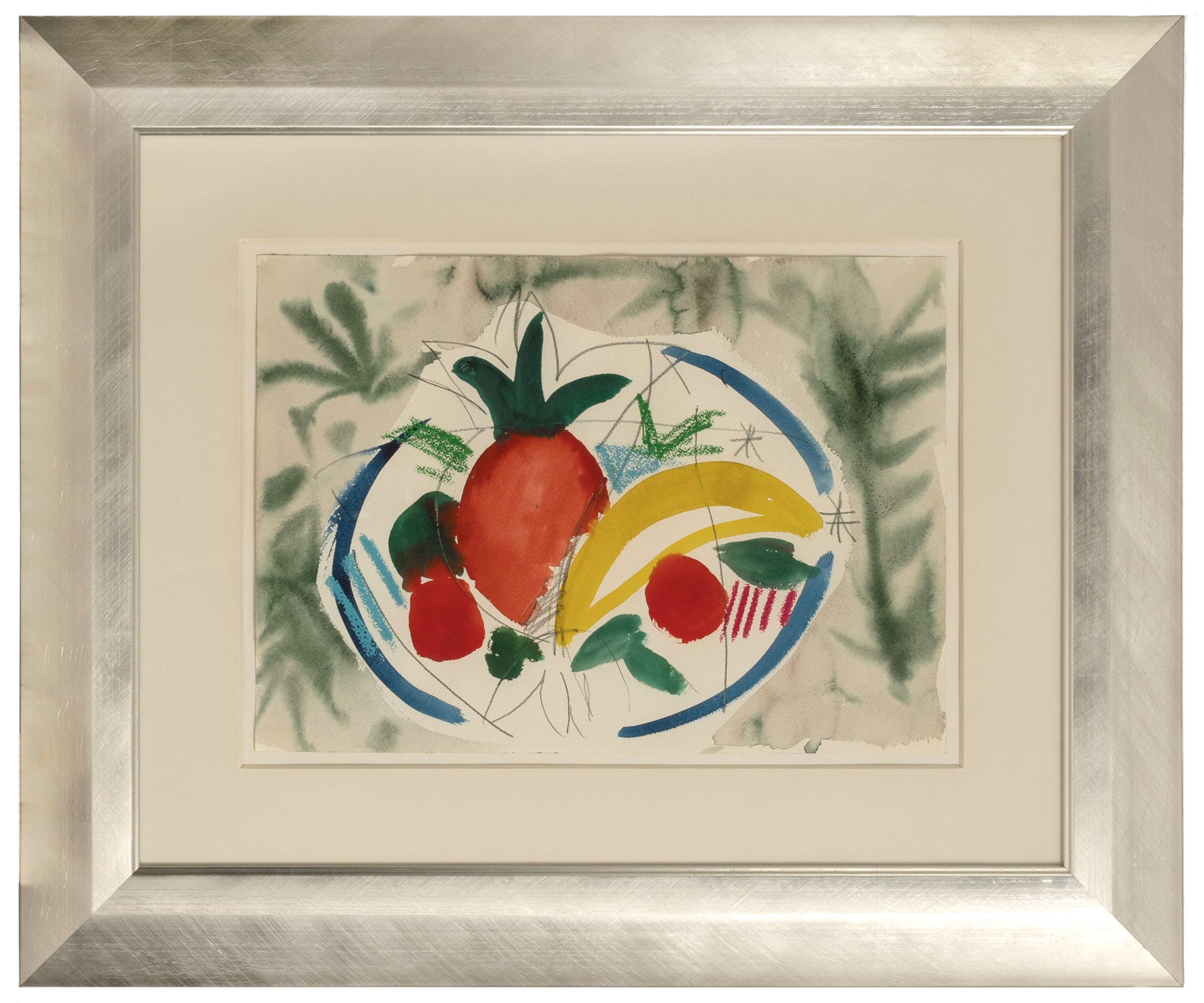 'Obstschale', watercolour on paper, 36 cm x 50 cm sheet dimensions, signed on verso of frame, dated 71, with gallery label and sticker, titled, mounted, slightly wavy due to material, copy of invoice enclosed