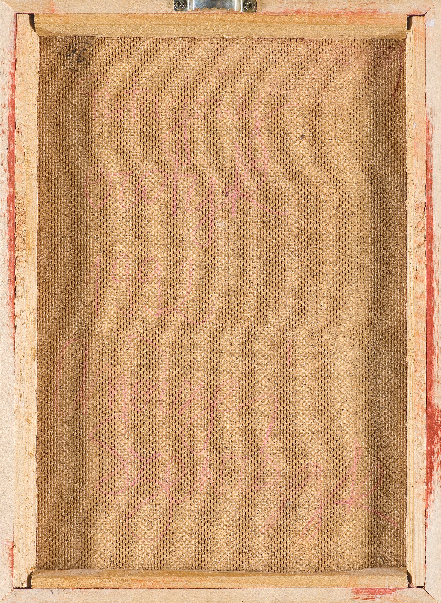 sygn. na odwr. na płycie różową kredką: Pistacjowy | erotyk | 1992 | Andrzej | Szewczyk