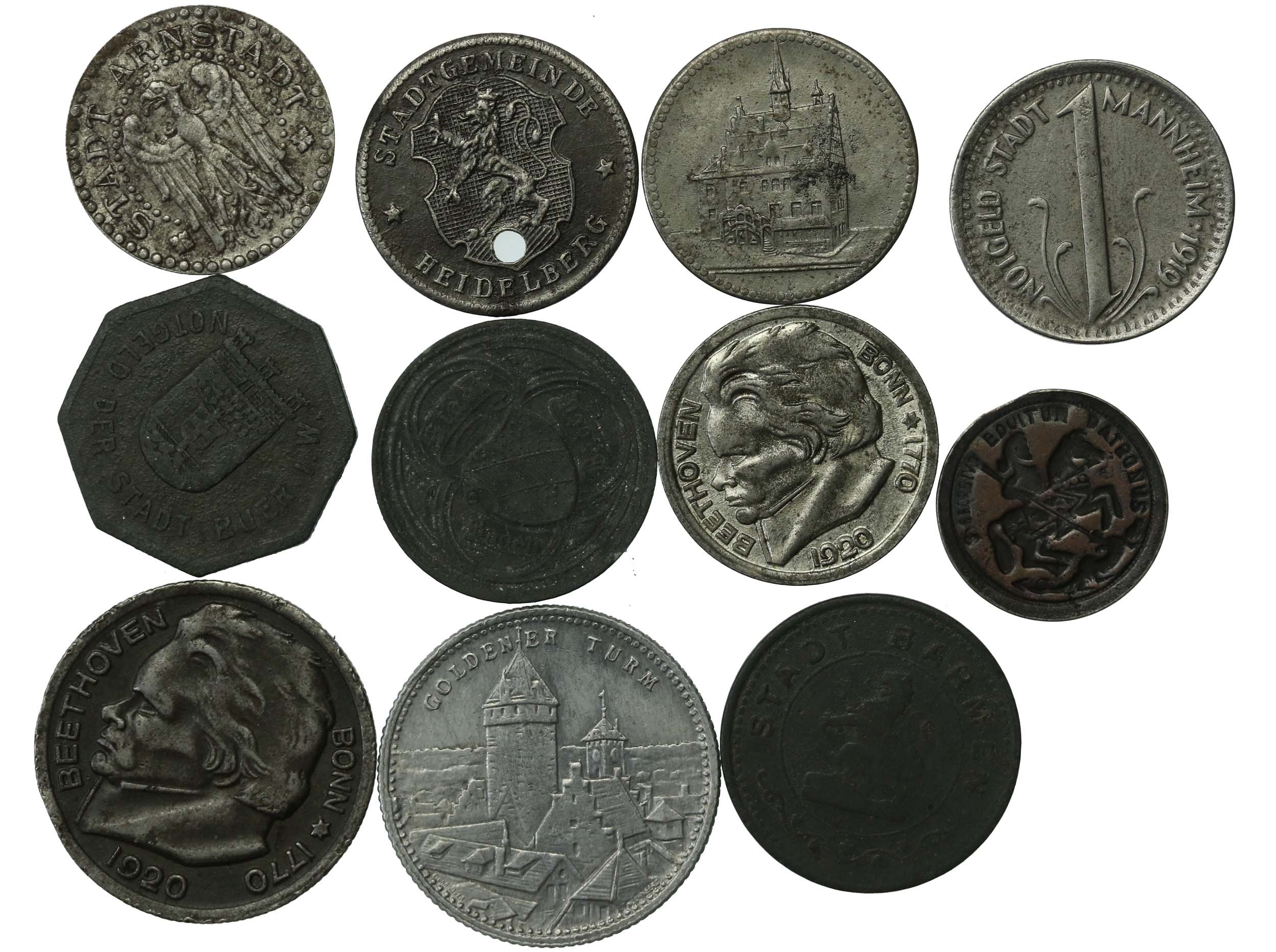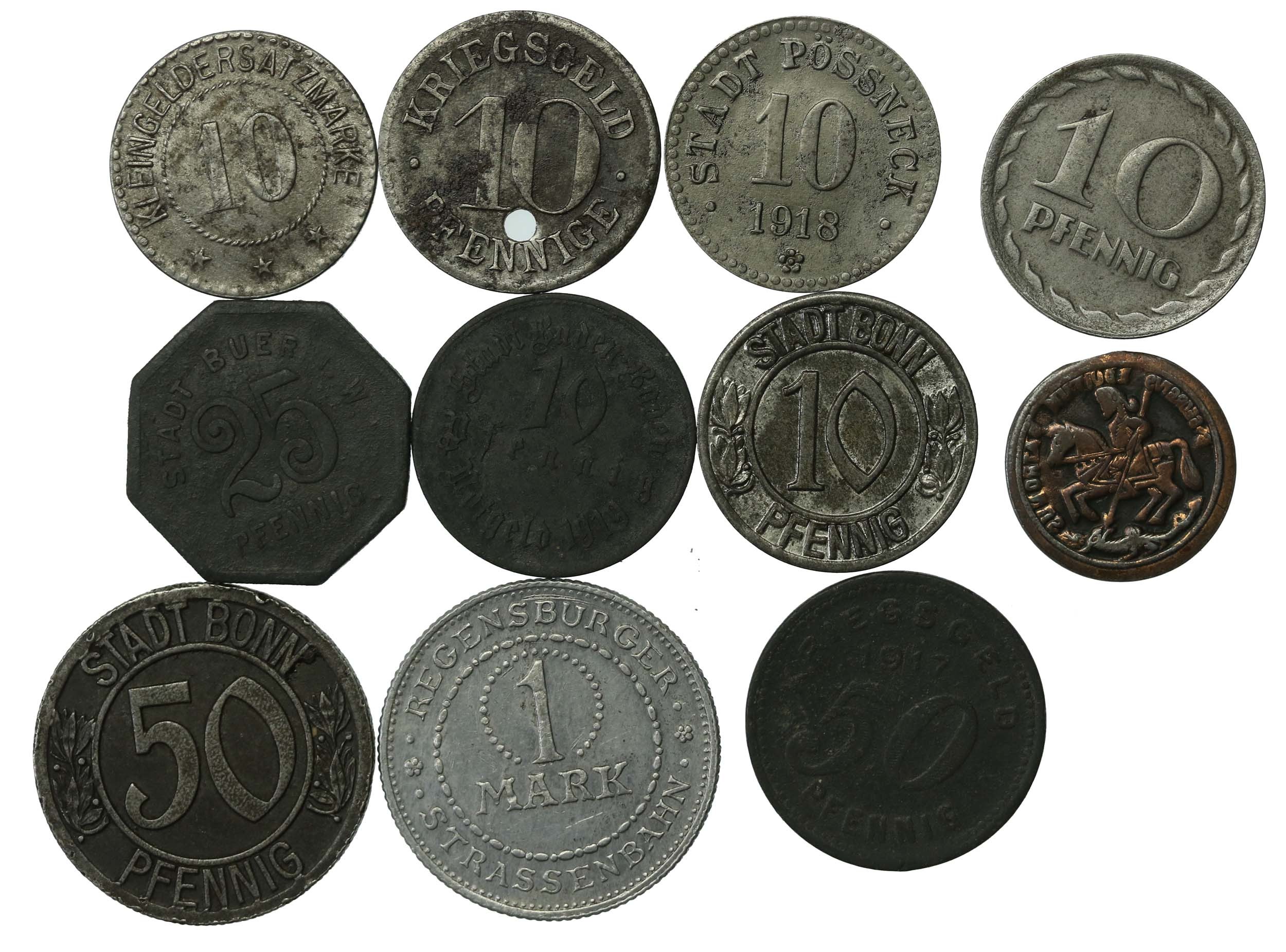 Niemcy, zestaw monet zastępczych. Razem 11 szt. Różne stany zachowania.