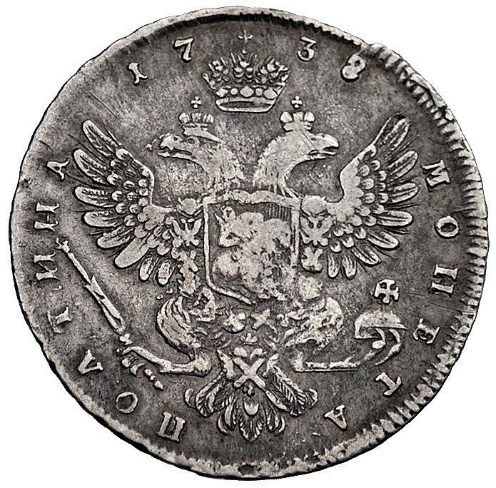 połtina 1738, Moskwa, Aw: Popiersie i napis wokoło, Rw:...