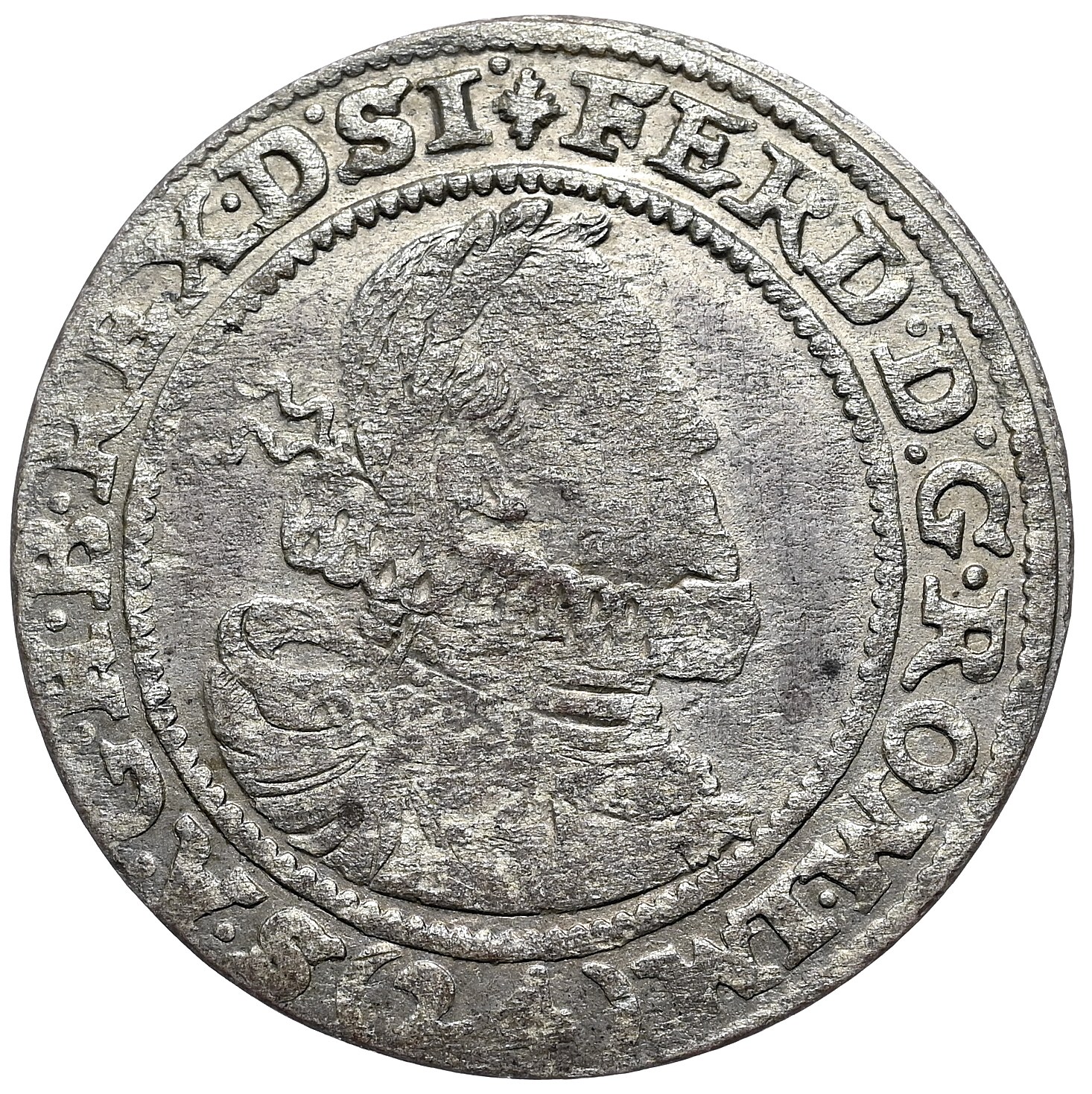 Śląska 24-krajcarówka z popiersiem i tytulaturą Ferdynanda II Habsburga.