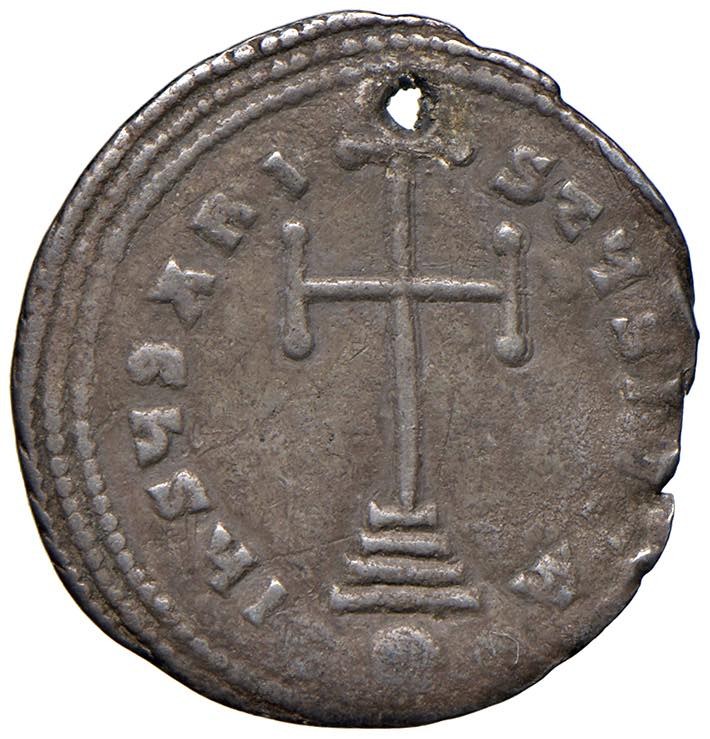 BISANZIO Basilio I (867-886) Miliaresion (Costantinopoli) Croce patente su tre gradini - R/ bASILIOS CE CONSTANTIN' PISTV bASILIS ROMEO - Sear 1708 AG (g 2,52) Forata, mancanza di metallo al bordo