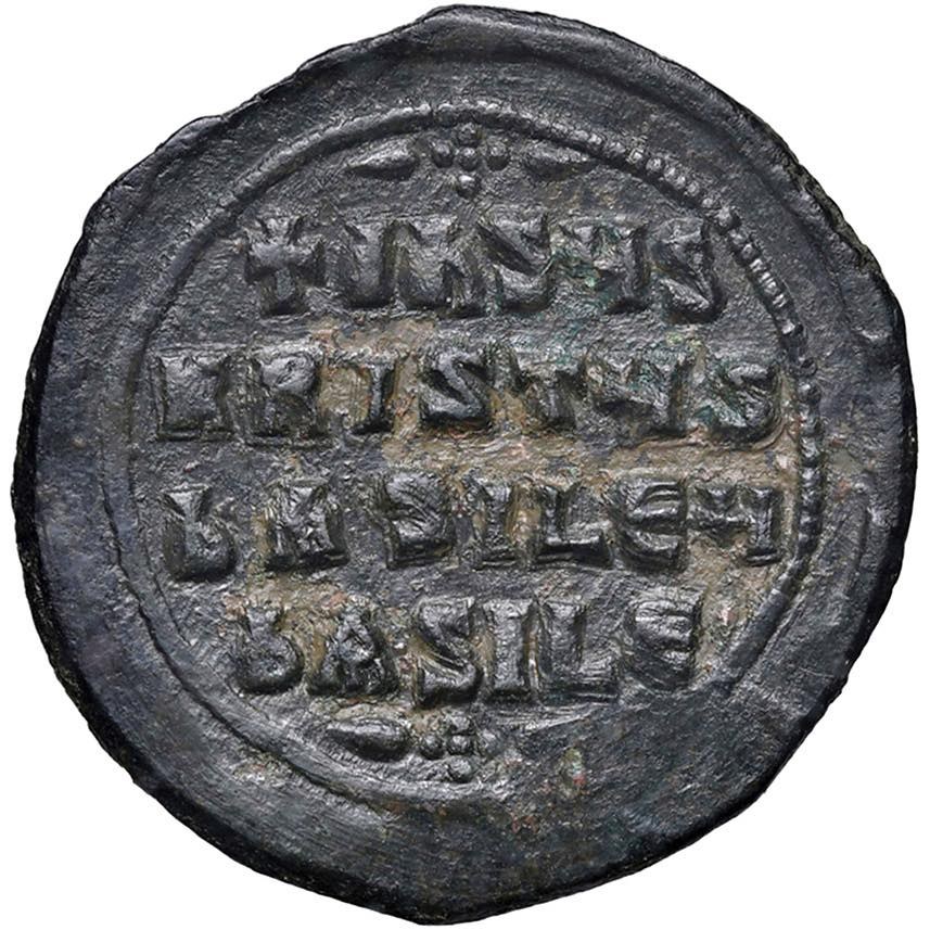Follis anonimi del periodo da Giovanni I a Alessio I - Follis - Busto di Cristo di fronte - R/ Scritta in quattro righe - Sear 1813 AE (g 18,76) Bell'esemplare dal modulo eccezionale