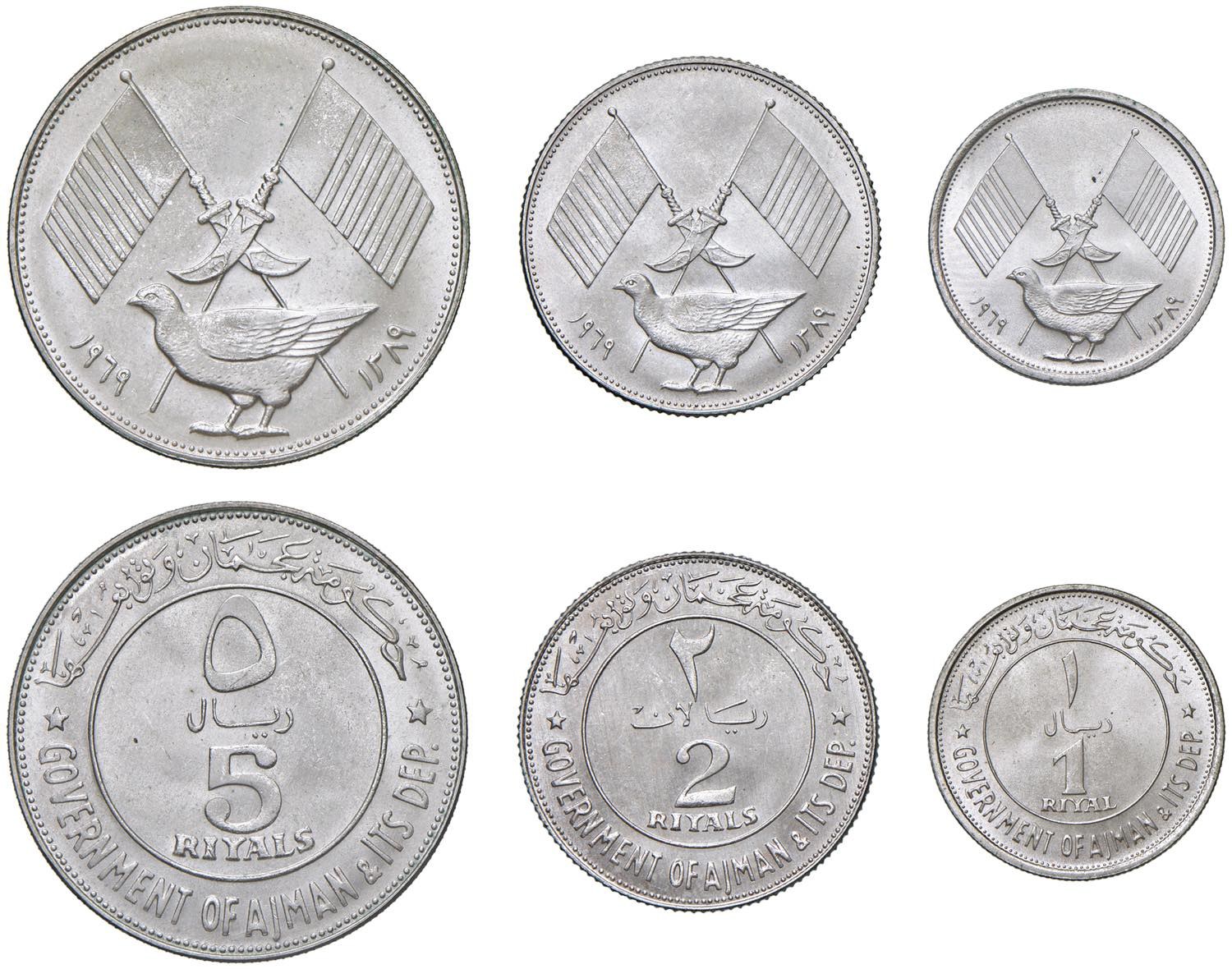 Foreign coins - AJMAN Serie di 3 valori da 5, 2 e 1 Riyals AH 1389...