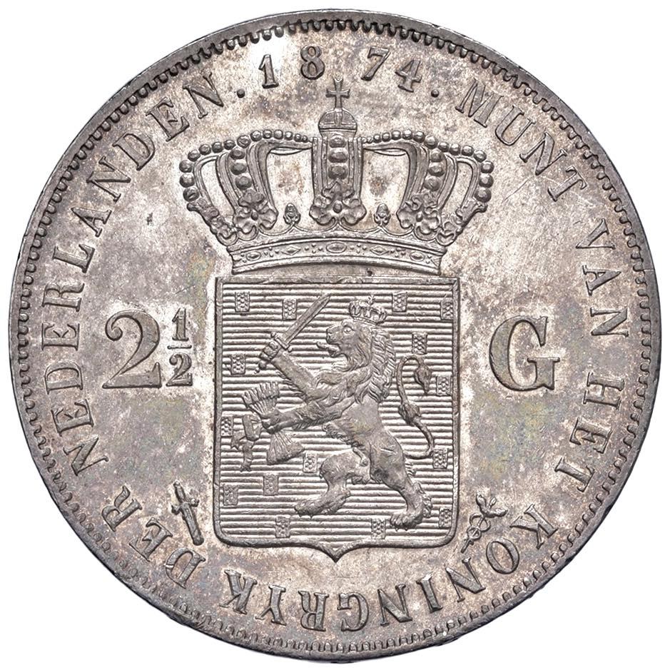 PAESI BASSI Guglielmo III (1849-1890) 2,5 Gulden 1874 - KM 82 AG (g 24,97)