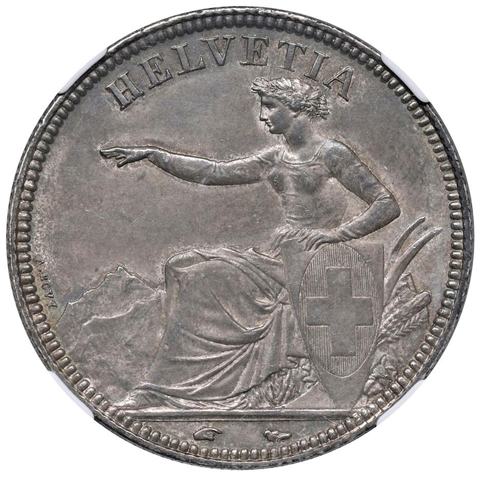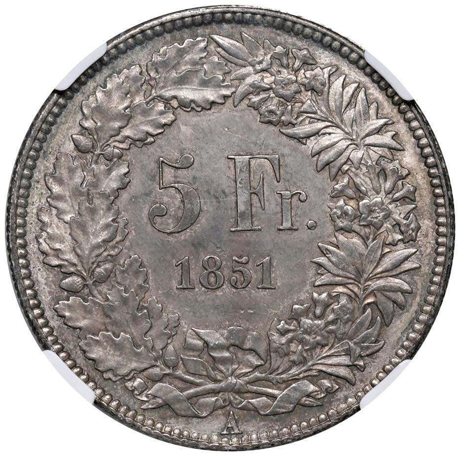 Foreign coins - SVIZZERA 5 Franchi 1851 - KM 11 AG In slab NGC AU ...