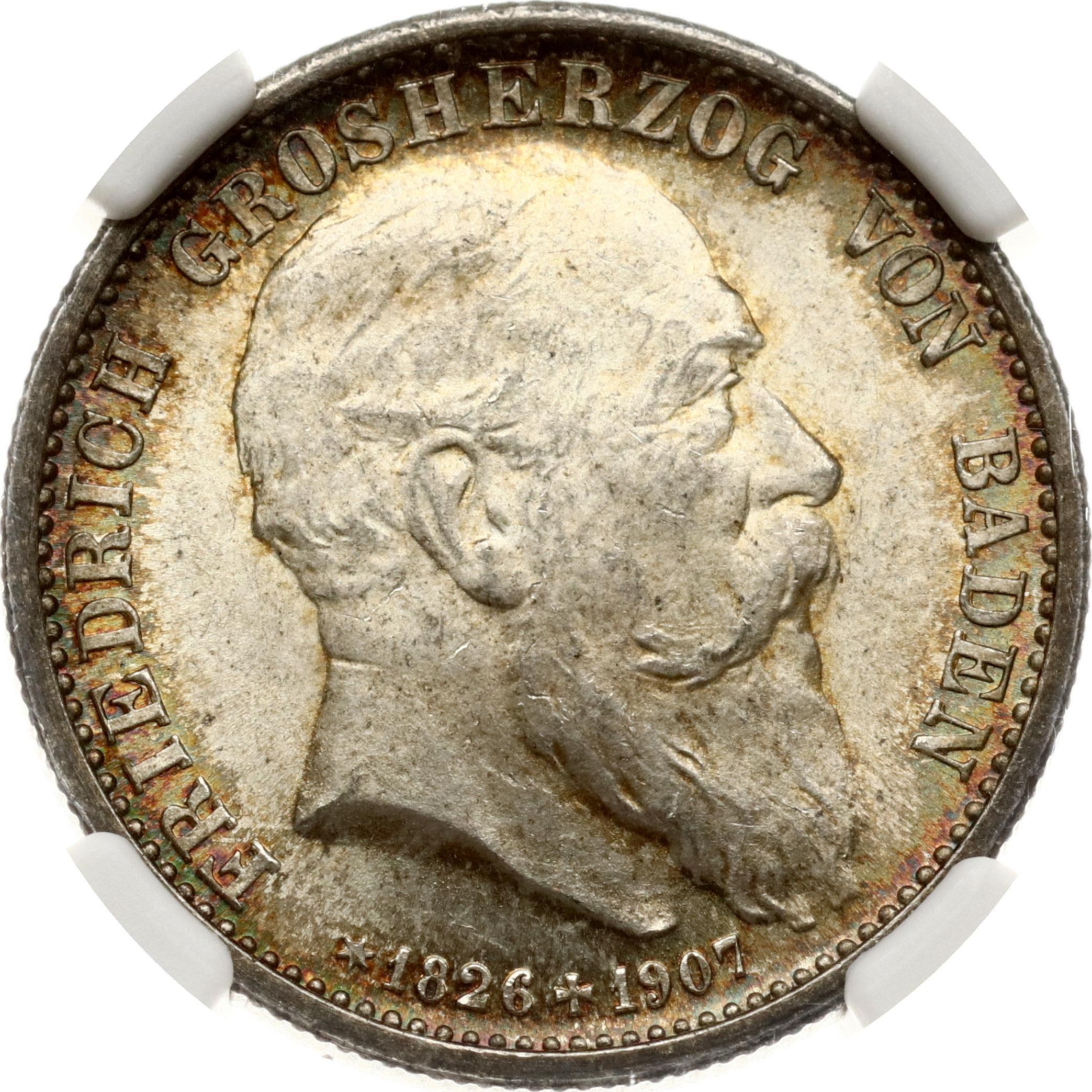 Germany Baden 2 Mark 1907 Death of Friedrich I NGC MS 65