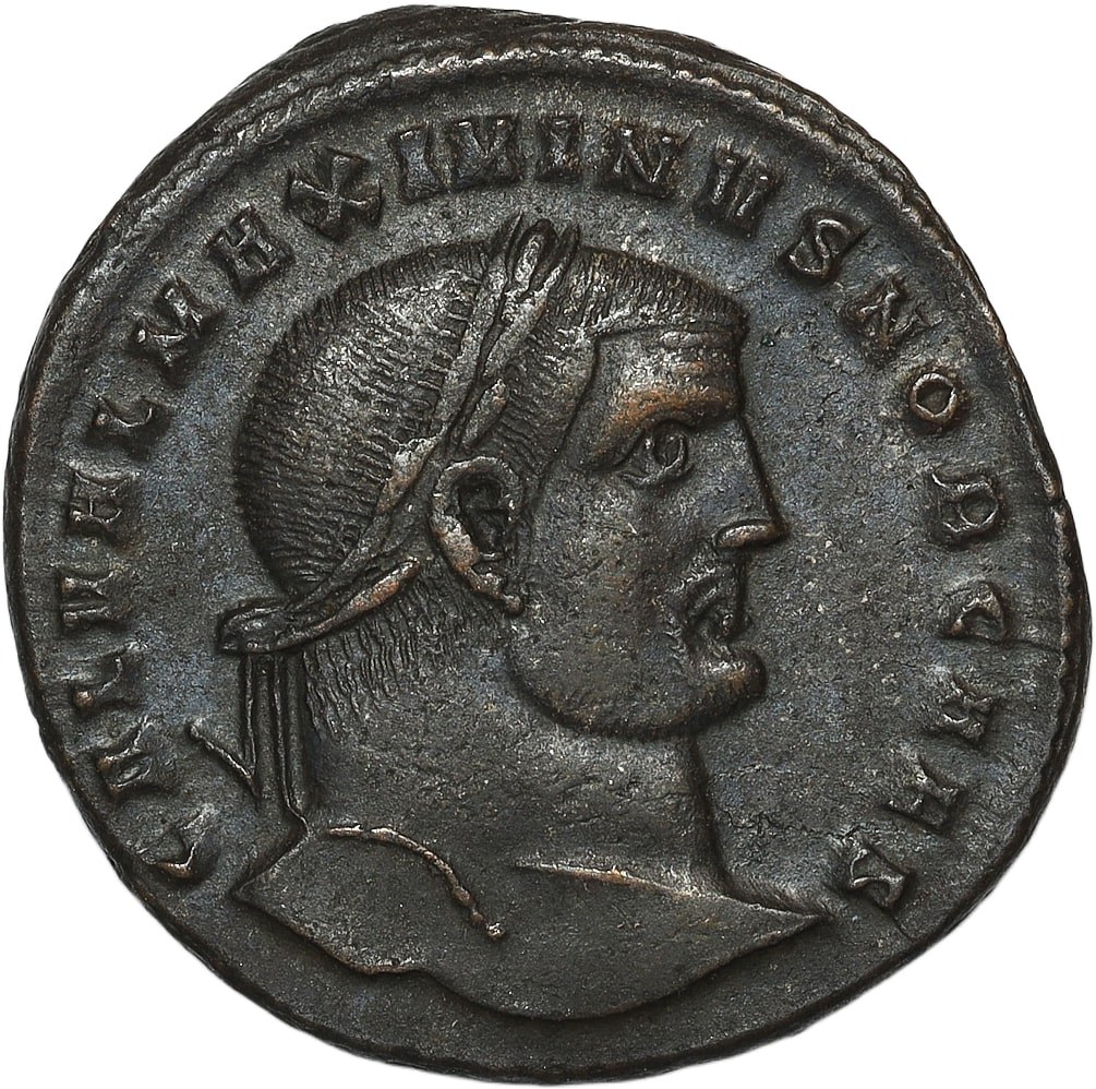Rzadki i ładnie zachowany follis z krótkiego okresu rządów Sewera II jako Cezara Zachodu.
