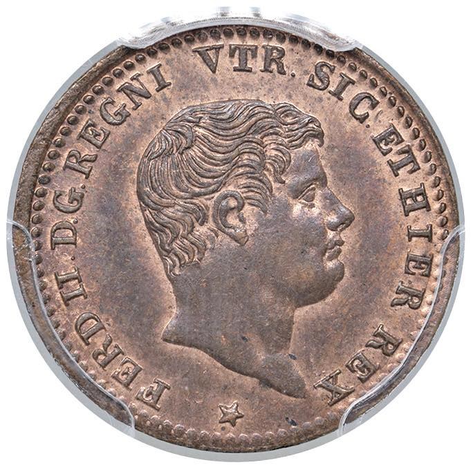 NAPOLI Ferdinando II (1830-1859) Mezzo tornese 1845 - Magliocca 794 CU In slab PCGS MS 64 RB cod. 81846650