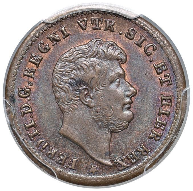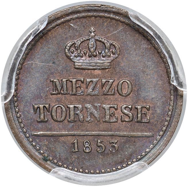 NAPOLI Ferdinando II (1830-1859) Mezzo tornese 1853 leggenda lunga - Magliocca 802a CU In slab PCGS MS 64 BN cod. 45811701
