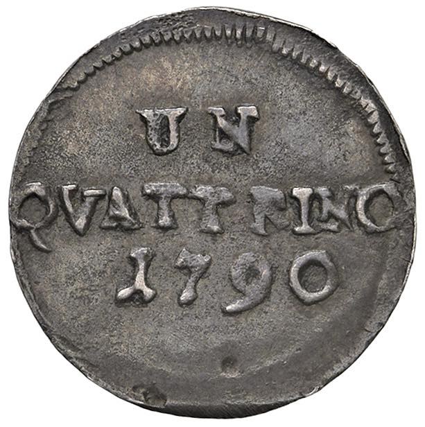 FIRENZE Pietro Leopoldo di Lorena (1765-1790) Quattrino 1790 - MIR 395/12 AG (g 0,68) RRRRR Esemplare della più grande rarità coniato in argento. Il MIR, a p. 572, relativamente a questo millesimo, riporta la nota "nel Listino Ratto del 1967 è comparso un esemplare in argento (lotto 225)".