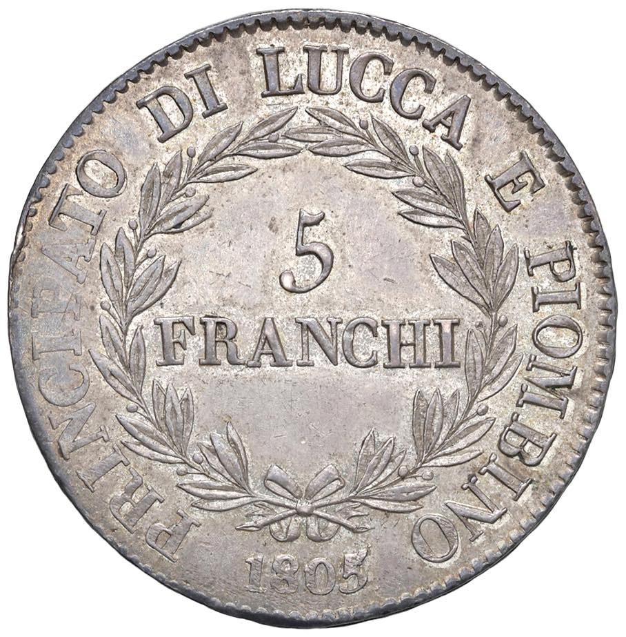 LUCCA Elisa Bonaparte e Felice Baciocchi (1805-1814) 5 Franchi 1805 - Gig. 1 AG (g 25) R