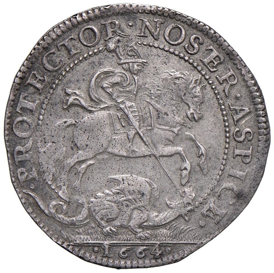 MANTOVA Carlo II Gonzaga (1647-1665) Quarto di Ducatone 1664 - MIR 697 AG (g 8,75) RR Segni al D/.