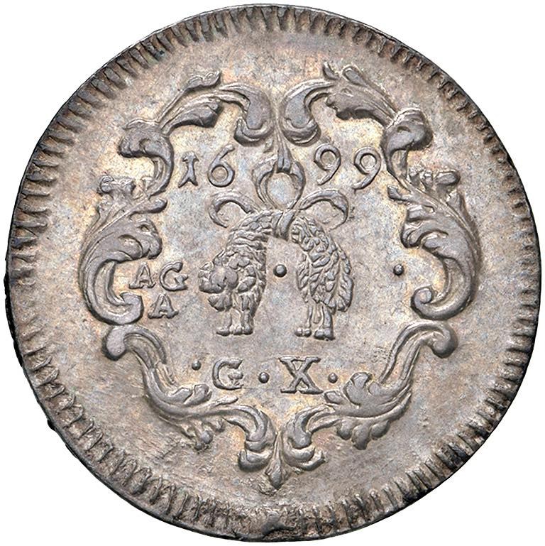 NAPOLI Carlo II d'Asburgo (1674-1700) Carlino da 10 Grana 1699 - Magliocca 49 (ed. 2025) AG (g 2,12)