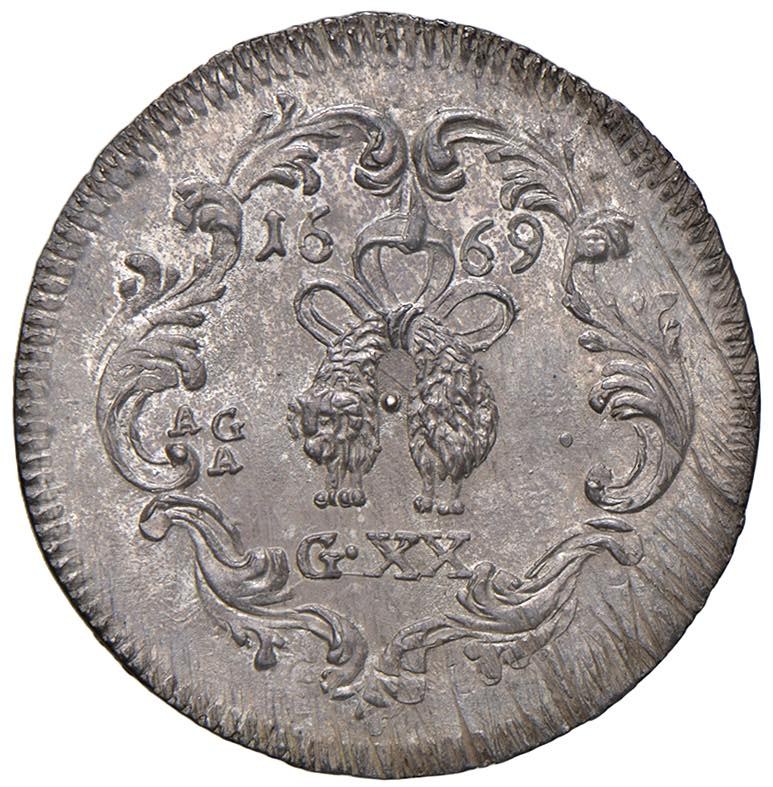 NAPOLI Carlo II d'Asburgo (1674-1700) Tarì 1669 - Magliocca 30a (ed. 2025) AG (g 4,34) RRRRR R/ Ultime due cifre della data invertite.