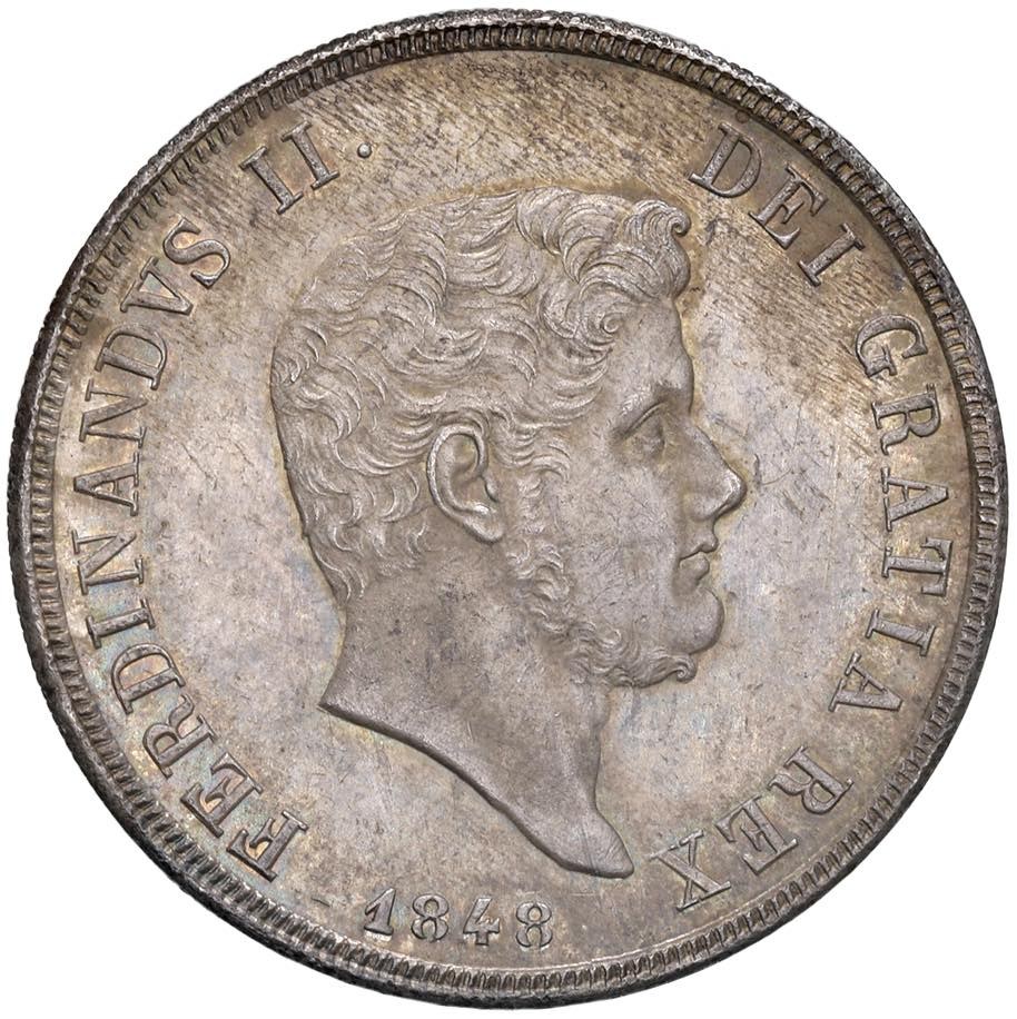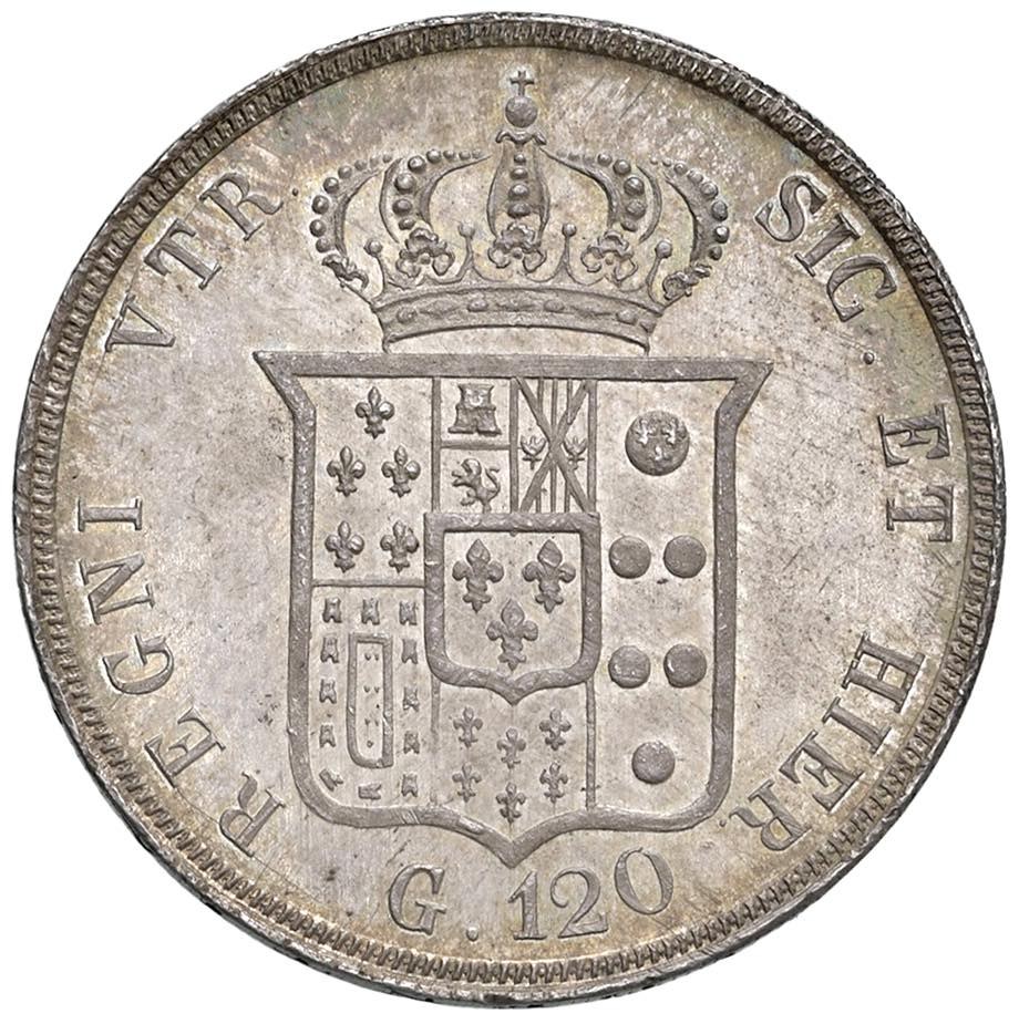 NAPOLI Ferdinando II di Borbone (1830-1859) Piastra da 120 Grana 1848 - Magliocca 556 (ed. 2025) AG (g 27,58) Bella patina.