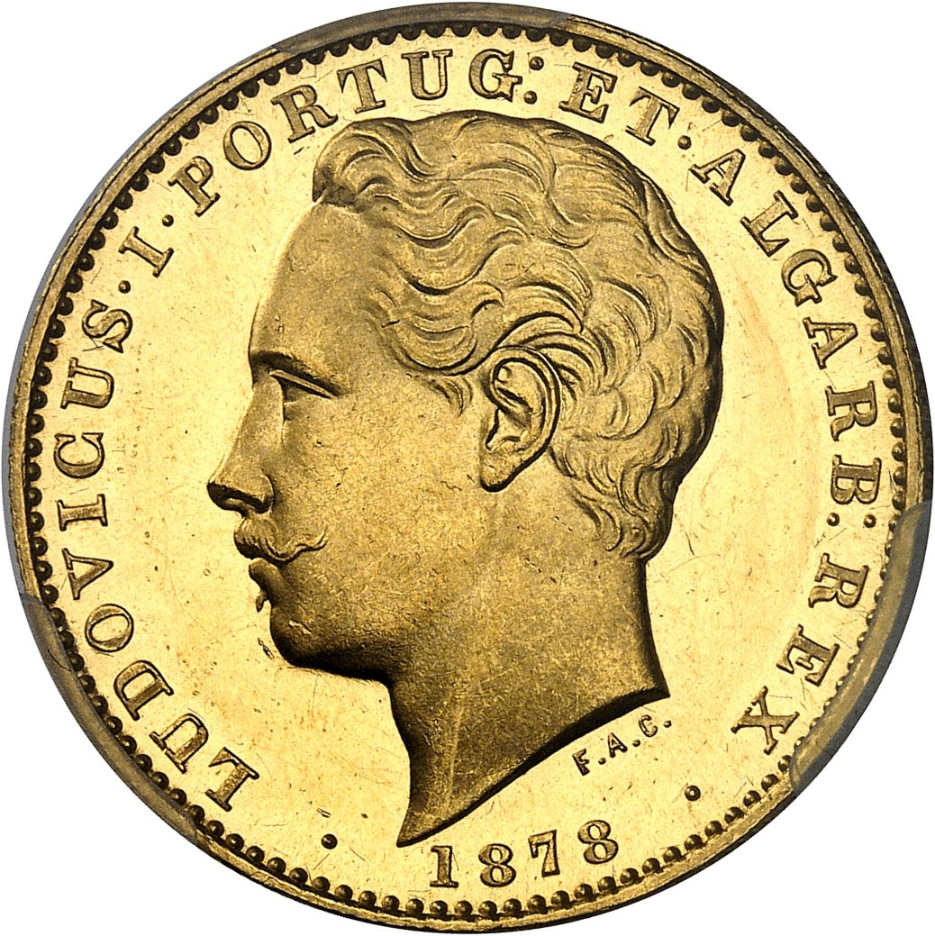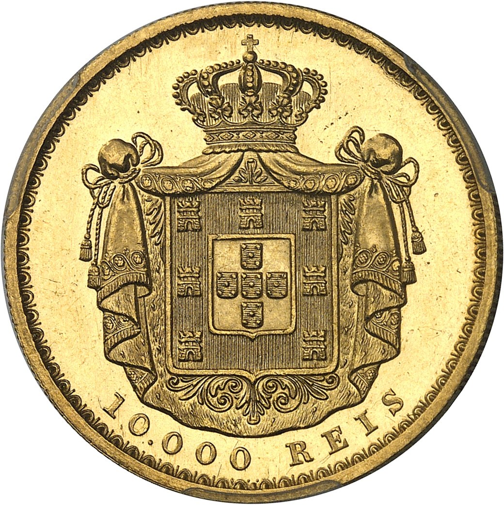 Louis Ier (1861-1889). 10000 réis (couronne), aspect Flan bruni (PROOFLIKE) 1878, Lisbonne. PCGS MS63PL (51871477).