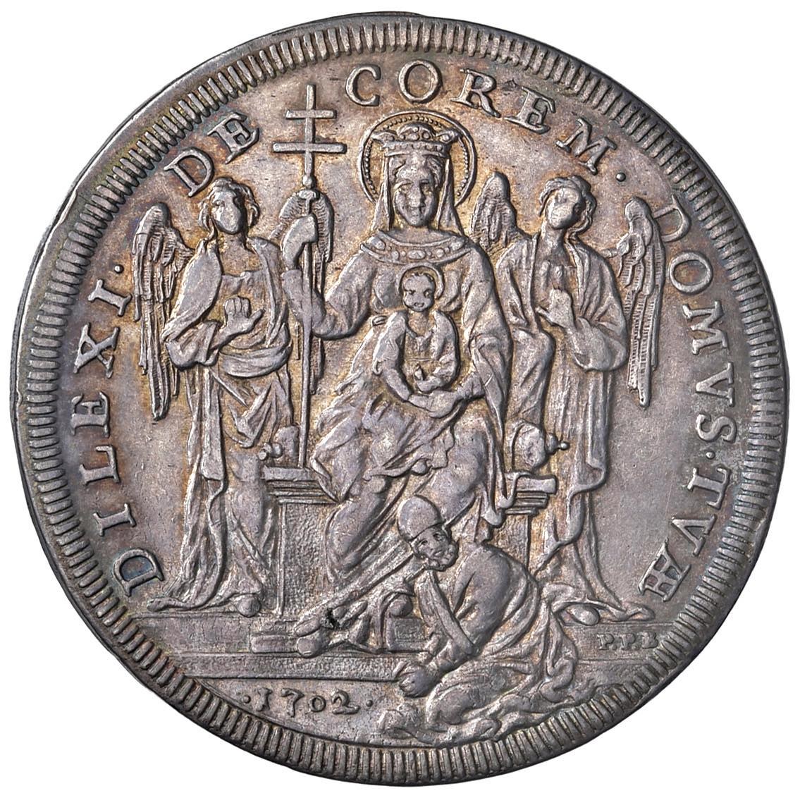 Clemente XI (1700-1721) Piastra 1702 A. II - Munt. 33 AG (g 31,99) RR Bella patina delicata