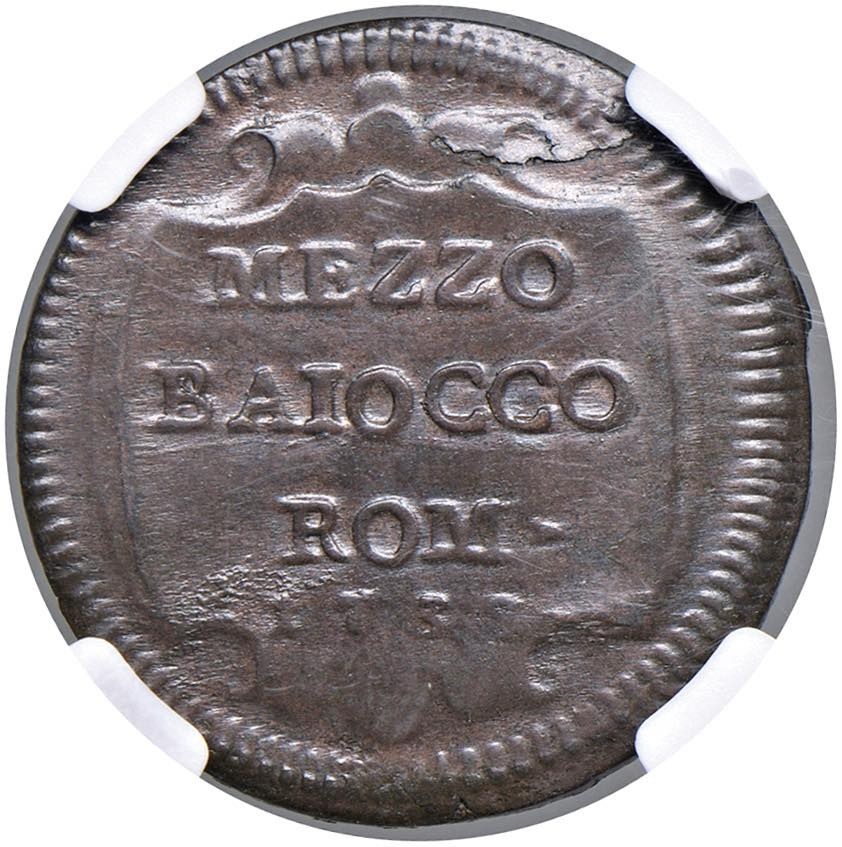 Clemente XII (1730-1740) Mezzo baiocco 1738 A. IX - CU In slab NGC MS 64 BN cod. 2804828-002. Top pop, miglior esemplare certificato NGC