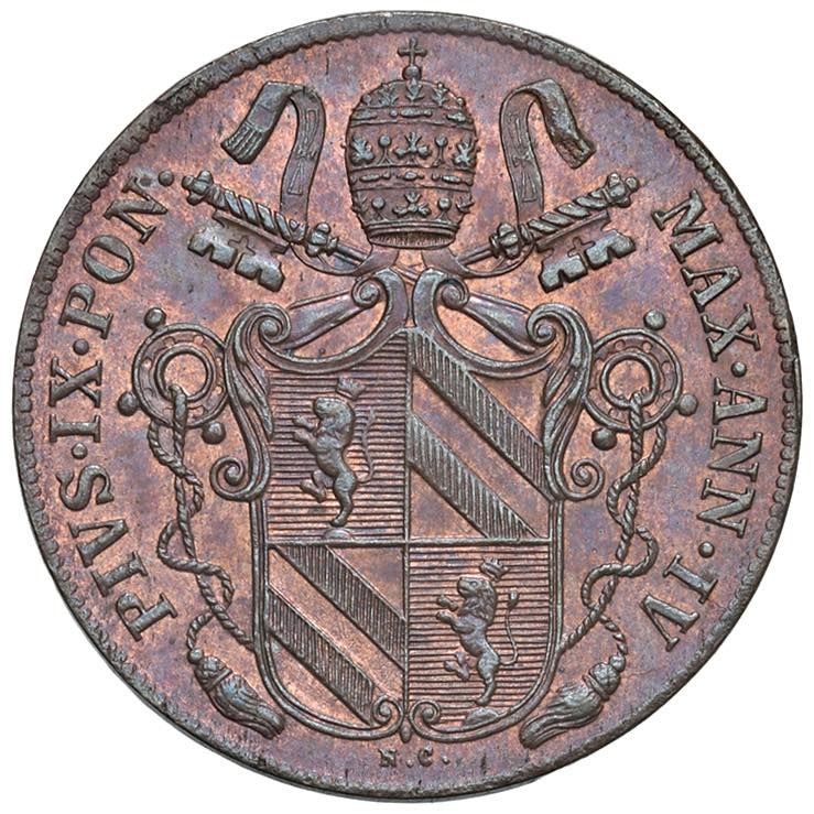 Papal coins - Pio IX (1846-1878) Baiocco 1849 An. IV - Munt. 31g...