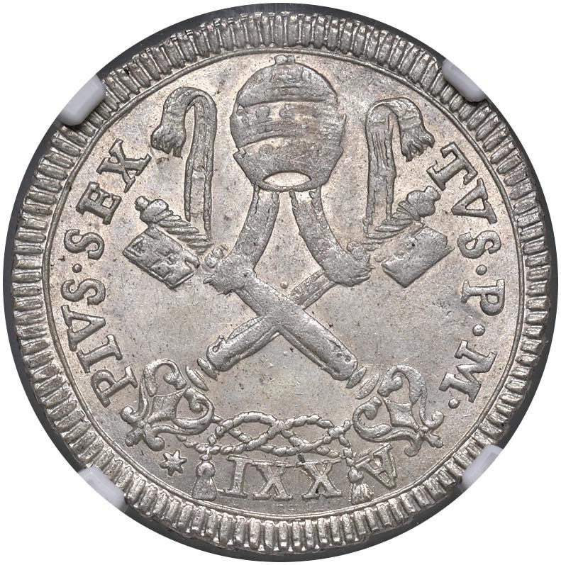 Pio VI (1775-1799) 25 Baiocchi 1795 An. XXI - Munt. 66a MI In slab NGC MS 65 n° 6635368-010.