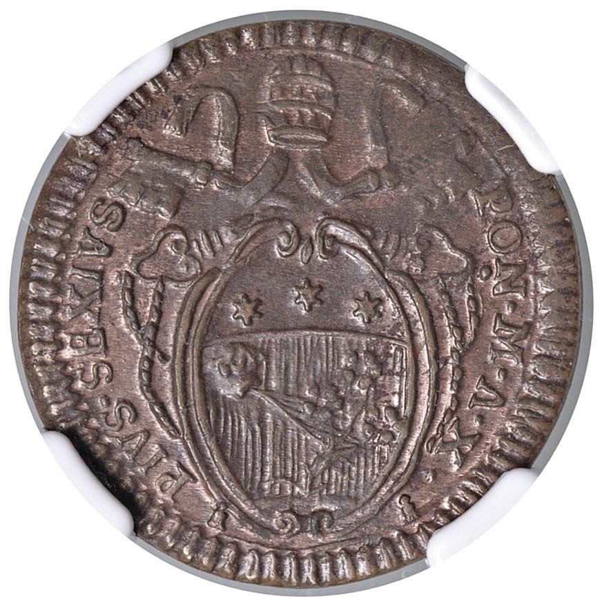 Pio VI (1775-1799) Quattrino 1785 A. X - Munt. 142a CU In slab NGC MS 63 BN cod. 2769684-005. Top pop, miglior esemplare certificato NGC