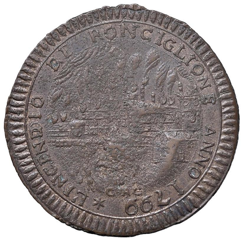 Prima repubblica romana (1798-1799) Ronciglione - 3 Baiocchi 1799 incendio di Ronciglione - Munt. 1 CU (g 15,71)