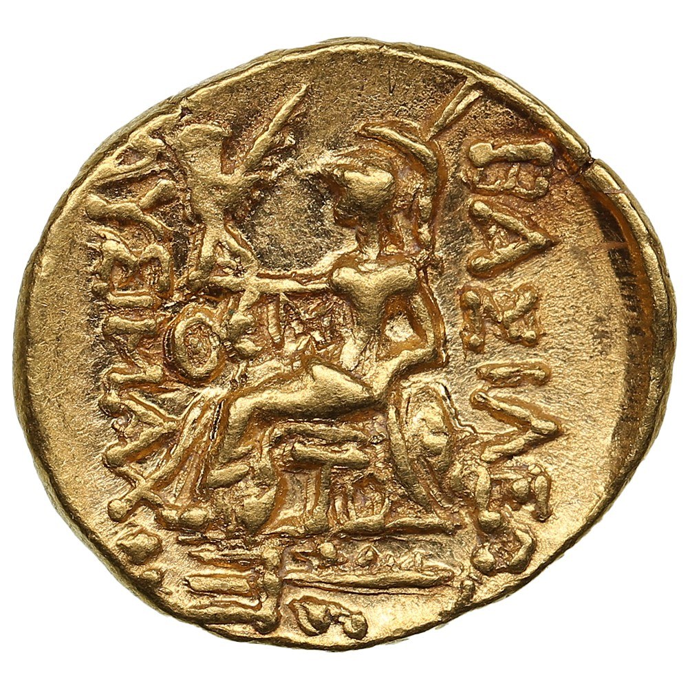 Rev.: Athena Nikephoros seated left; ΘEM to inner left, TO on throne; in exergue, trident left; “ΒΑΣΙΛΕΩΣ ΛΥΣΙΜΑΧΟΥ”.