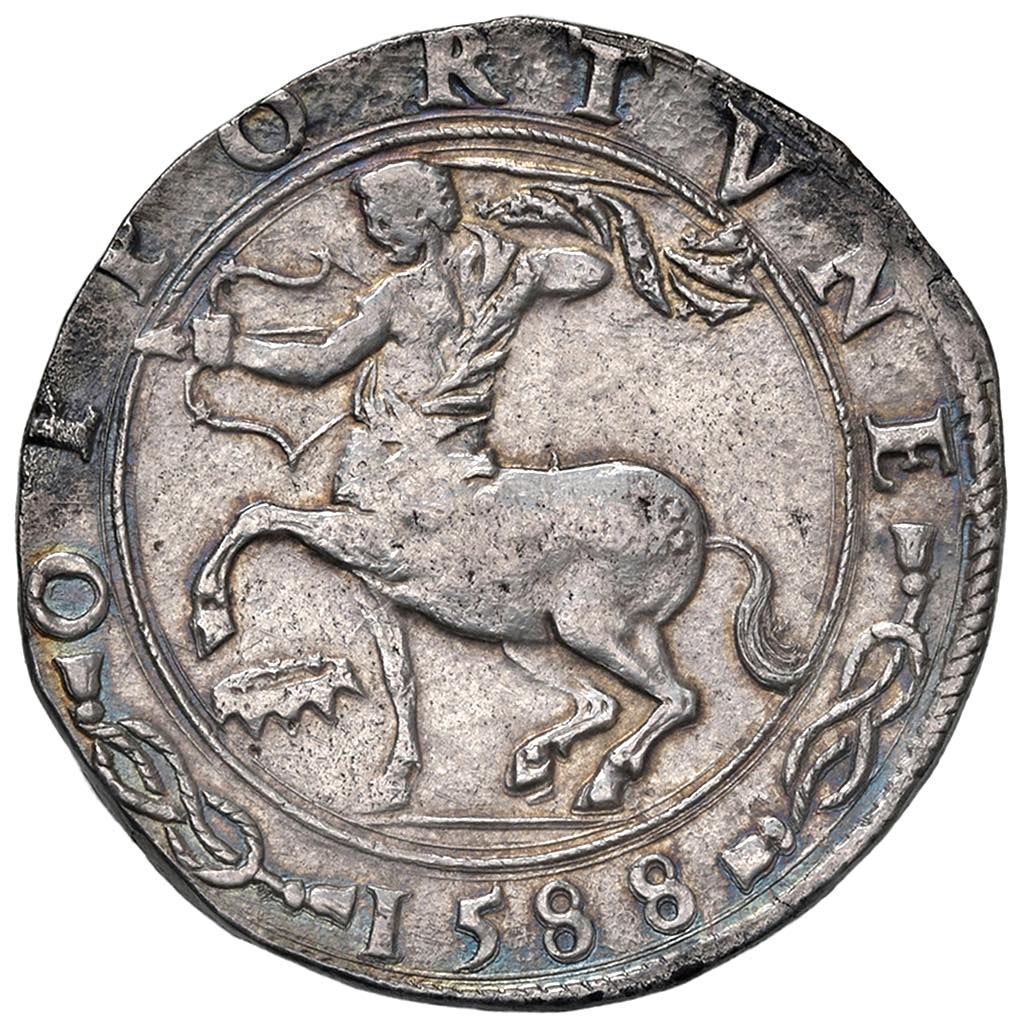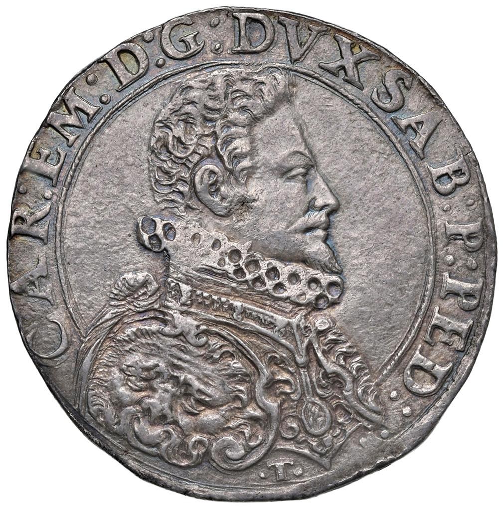Carlo Emanuele I (1580-1630) Ducatone 1588 T - MIR 600b AG (g 32) RRRR Nella storia del casato Savoia ci sono molti esempi in cui i vari esponenti della famiglia hanno voluto imprimere le loro imprese attraverso le monete; il ducatone di Carlo Emanuele I di Savoia è uno di questi casi. In questo ducatone, il secondo della sua tipologia, si trova al diritto un meraviglioso ritratto del duca in armatura all'antica a sottolineare la sua attività militare. Al retro si può osservare un centauro intento a scagliare una freccia mentre calpesta una corona rovesciata e sul suo corpo si trovano i segni della costellazione del Saggitario. Questa immagine, unita all'anno di coniazione, alla legenda "OPPORTUNE" (tradotto "Al momento giusto") e alla corona rovesciata, ha portato molti studiosi e appassionati a collegare questa moneta all'inizio della guerra franco-sabauda dove Carlo Emanuele I alla fine del conflitto riesce a strappare il comune di Saluzzo dal dominio francese. Questa interpretazione non è condivisa da tutta la comunità scientifica, in quanto altri, come Elio Biaggi, ipotizza che potrebbe riferirsi piuttosto a un progetto e non ad un fatto ancora compiuto. Infatti Biaggi sospetta che questa moneta sia stata coniata nella speranza del duca di poter occupare la città di Ginevra.