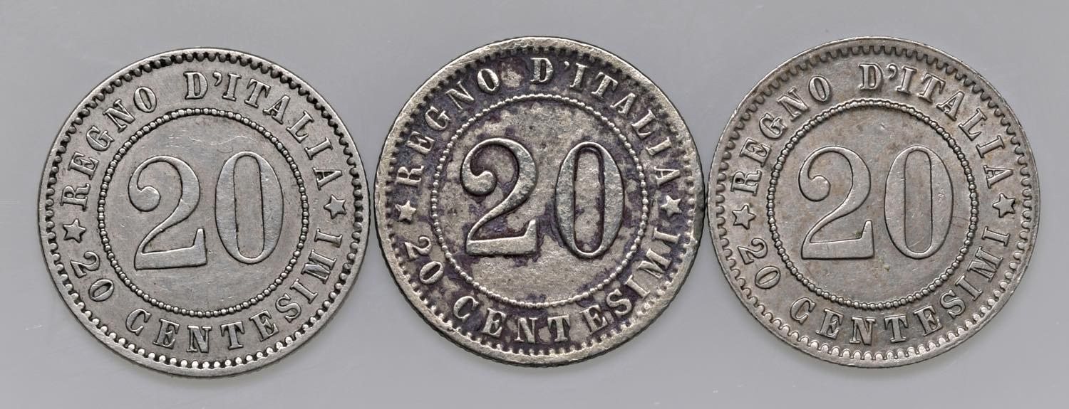 Savoy Coins - Umberto I (1878-1900) 20 Centesimi - Lotto di tre ...
