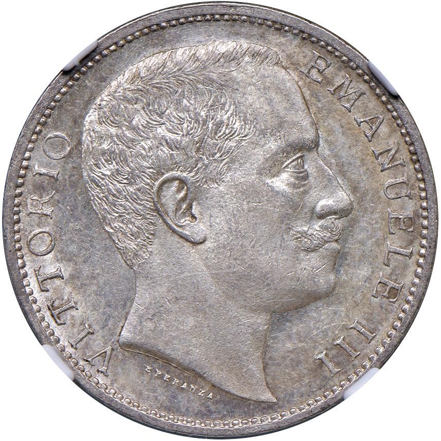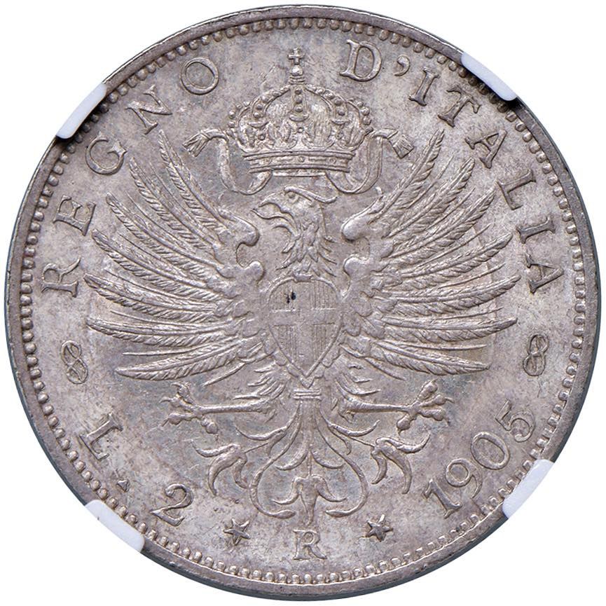 Vittorio Emanuele III (1900-1946) 2 Lire 1905 - Nomisma 1155 AG In slab NGC MS 62 cod. 5786584-007