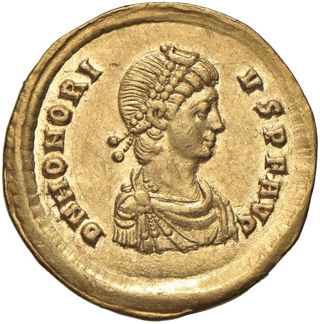 Onorio (393-423) Solido (Sirmium) Busto diademato a d. ...