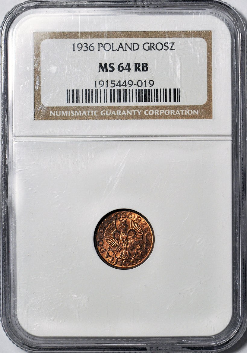 Menniczy egzemplarz, mocny połysk, czerwonobrązowy kolor. Stary slab NGC. Konserwatywny grading sprzed ponad 20 lat.