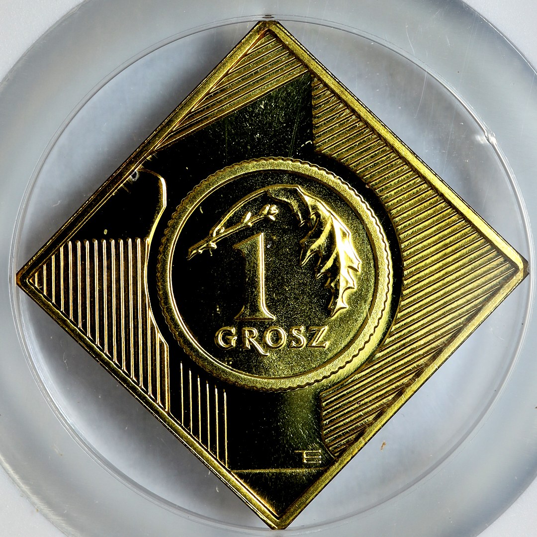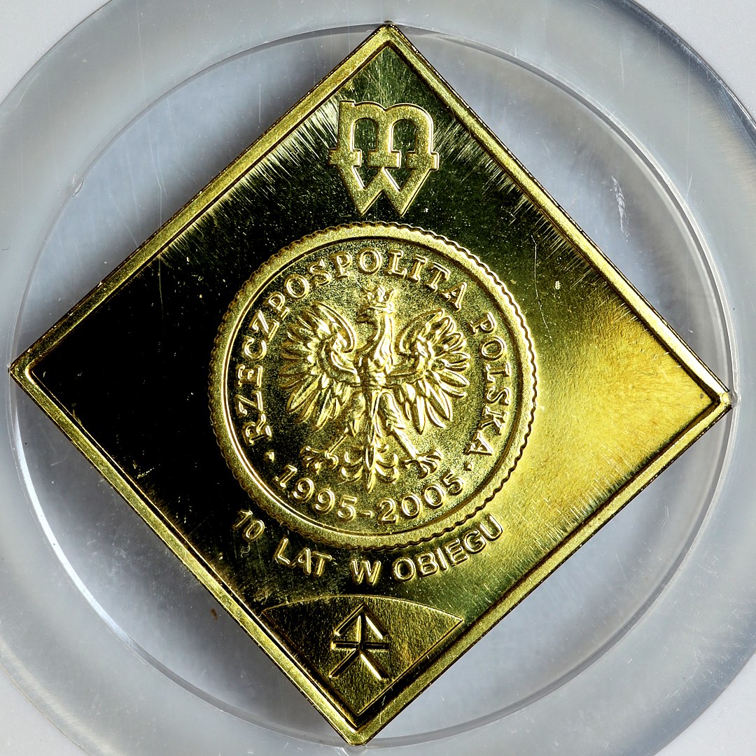 Klipa wykonana przez Mennicę Państwową na 10-lecie wprowadzenia do obiegu nowych monet.