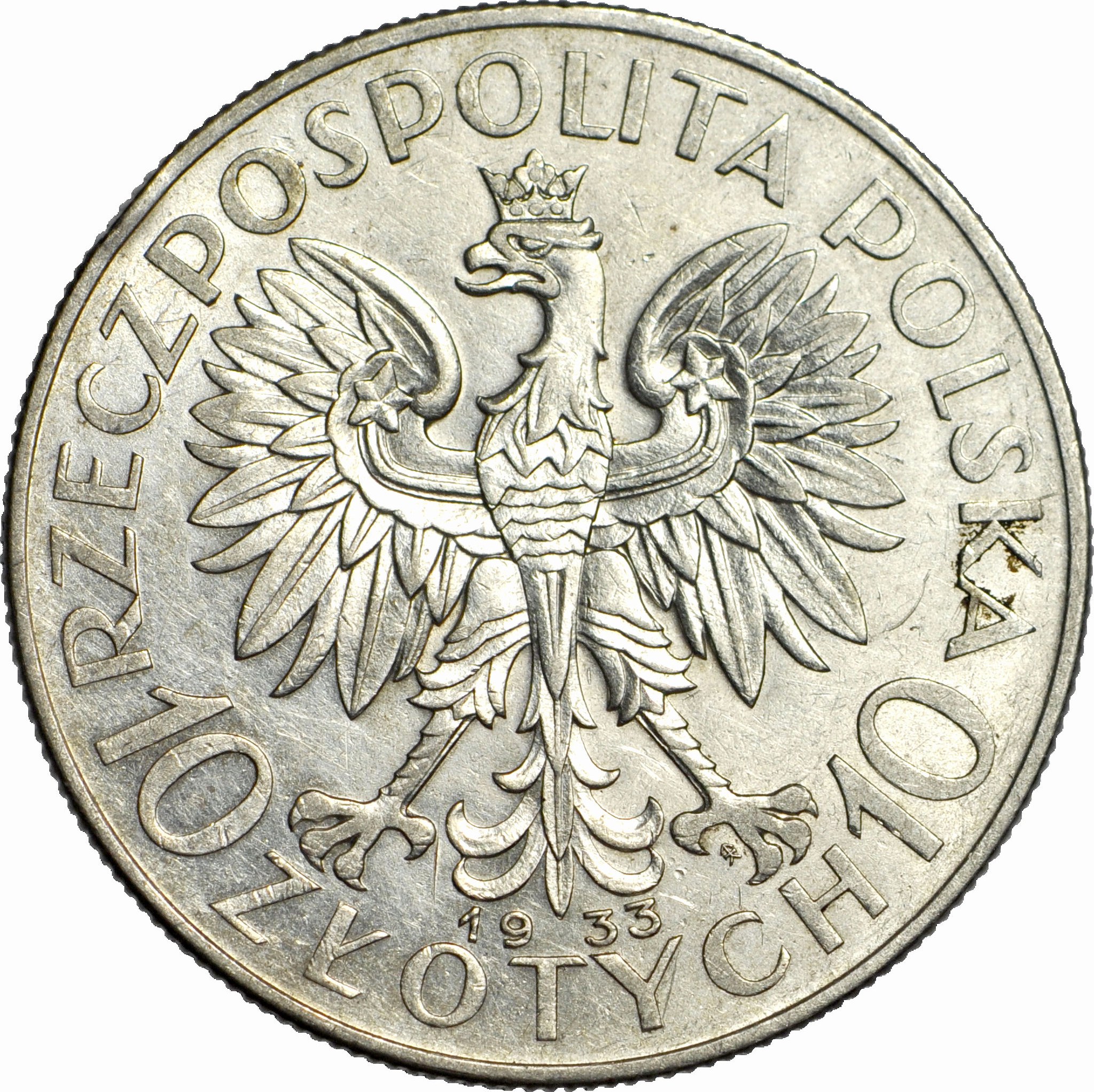 10 złotych 1933, Głowa, okołomennicza