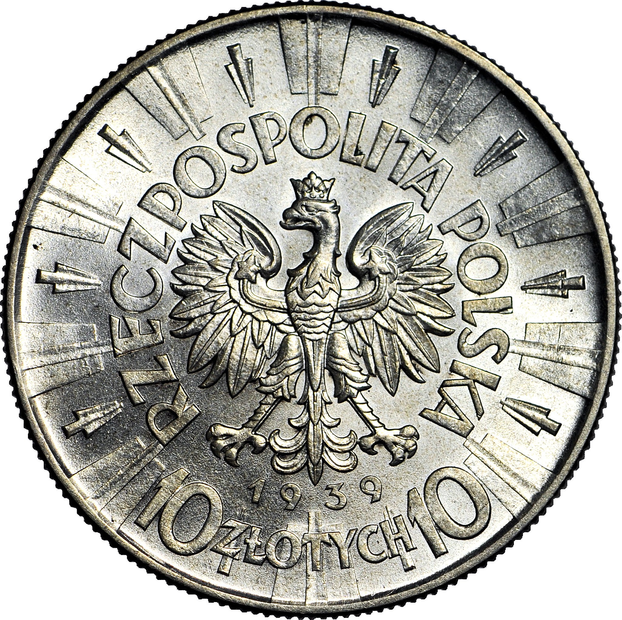 10 złotych 1939, Piłsudski, menniczy, piękny