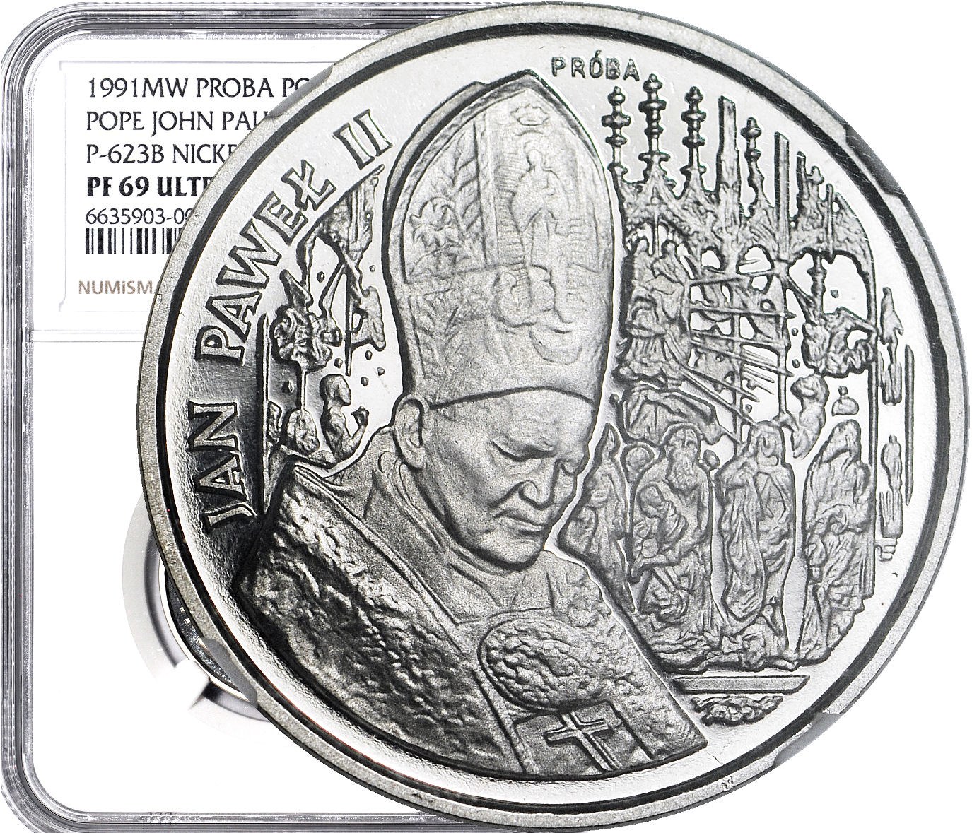 100.000 złotych 1991, Jan Paweł II, popiersie na tle ołtarza, PRÓBA NIKIEL