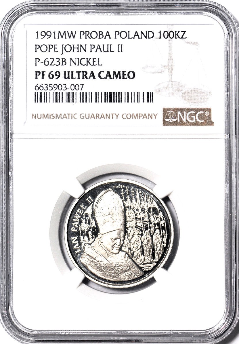 Mała kolekcja selekcjonowanych pod względem stanów zachowania prób niklowych w gradingu NGC. Próba niklowa wybita w nakładzie 500 szt. Menniczy wyśmienity selekcjonowany egzemplarz w idealnym stanie. 2-ga najwyższa nota w NGC, jednak moneta w nocie PF70 nigdy nie była notowana na Onebid.