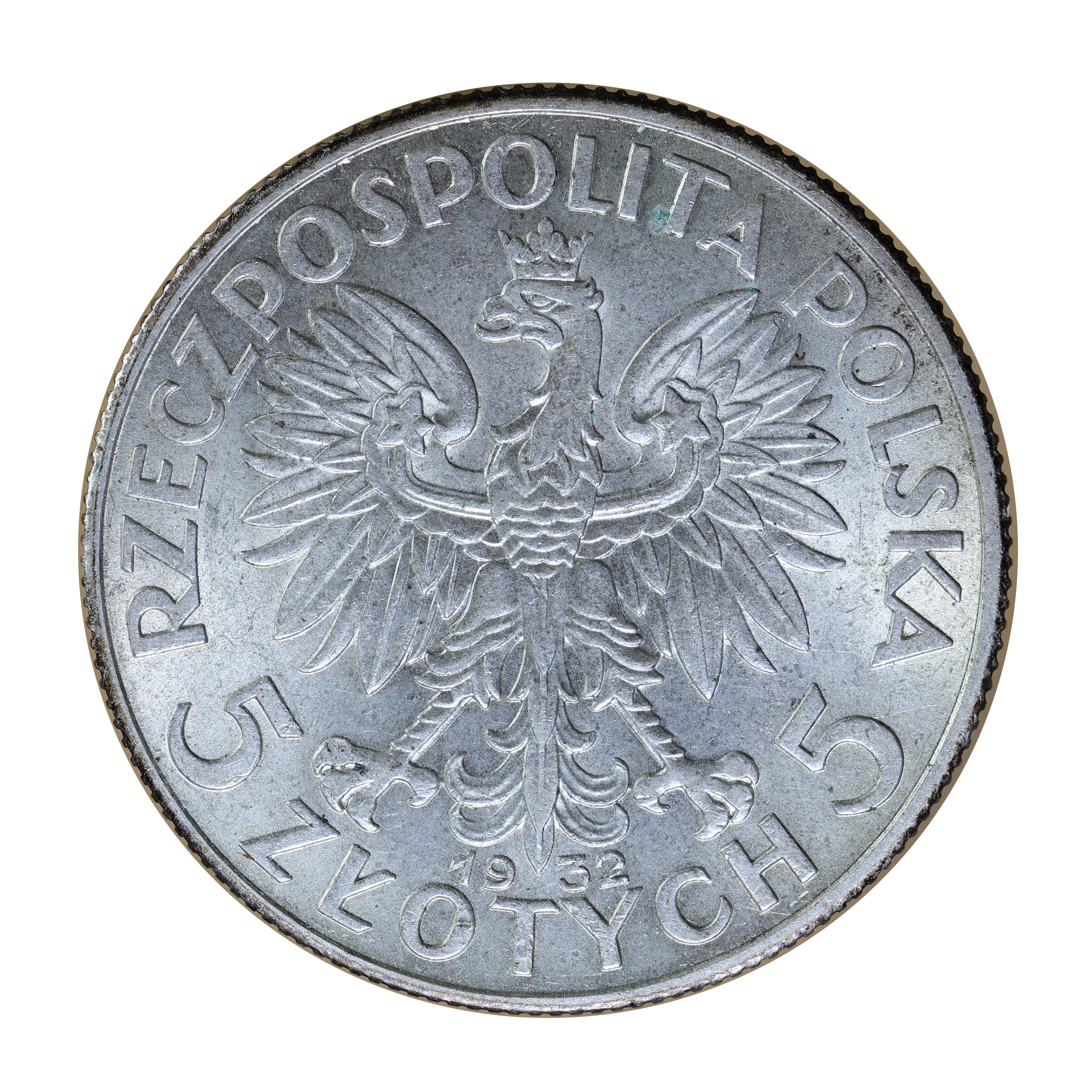 5 złotych 1932 r., bez znaku, głowa kobiety, II Rzeczpospolita Polska 1923-1929