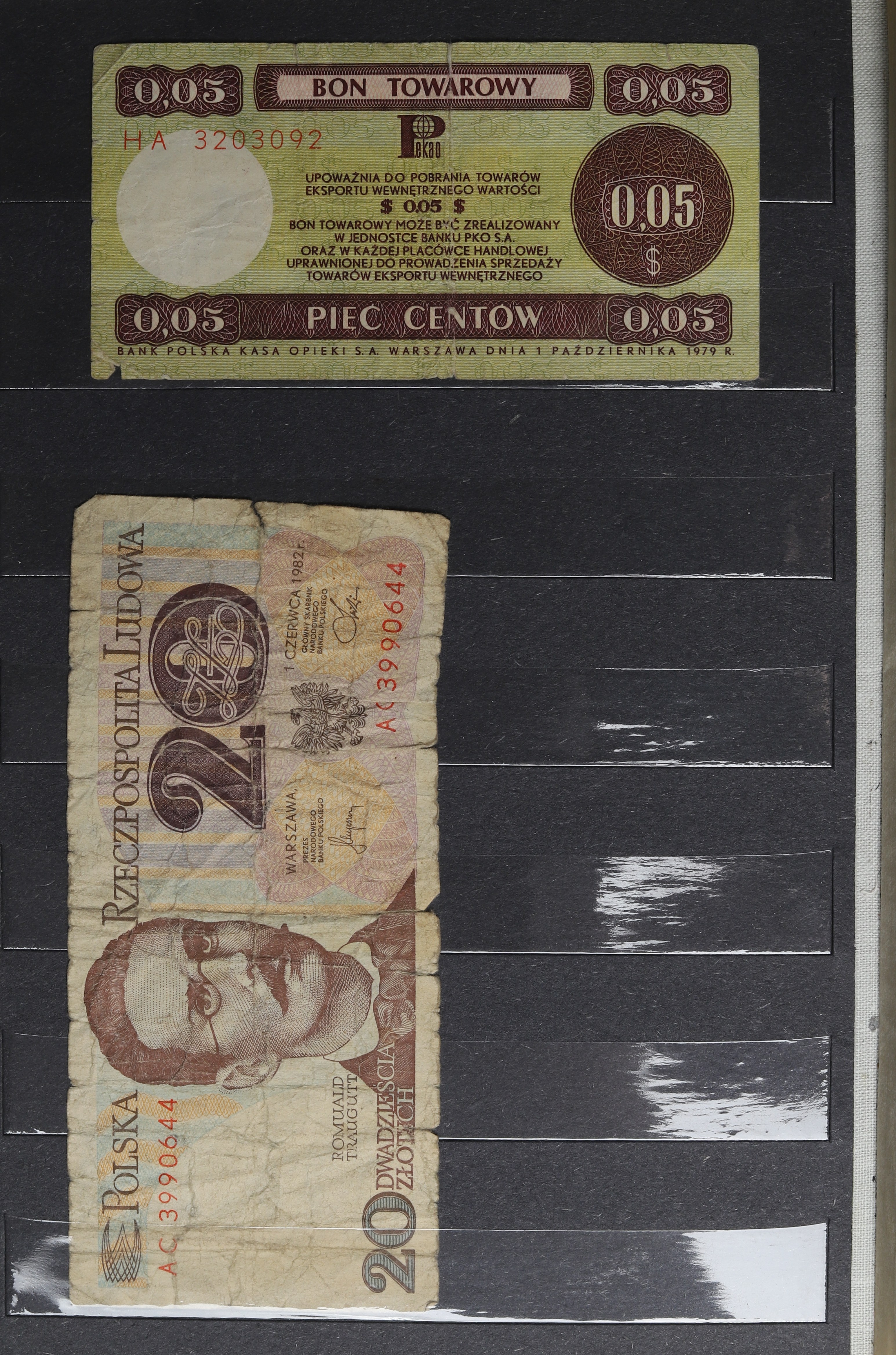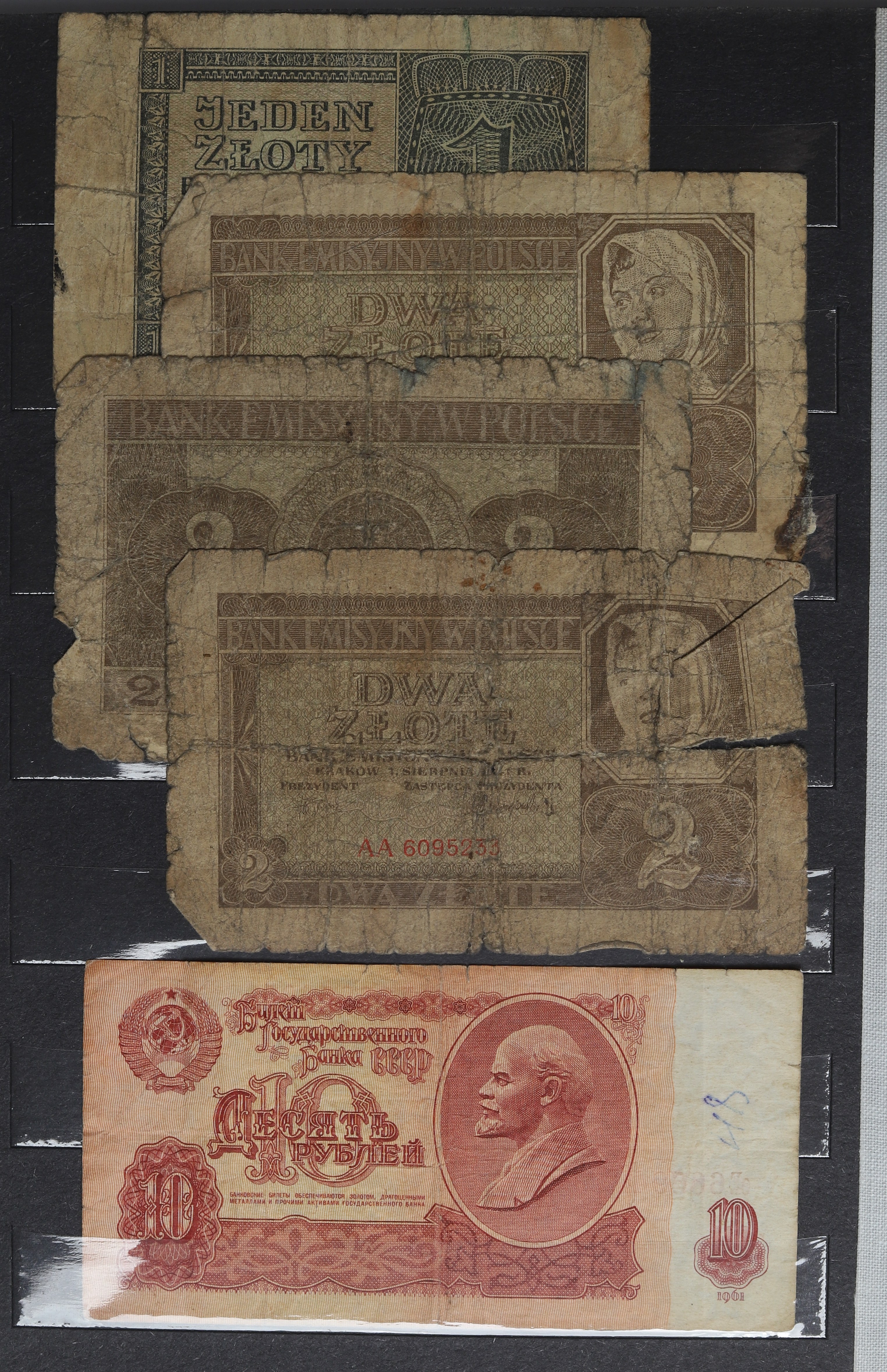 Klaser banknotów w kondycji wyraźnie obiegowej.