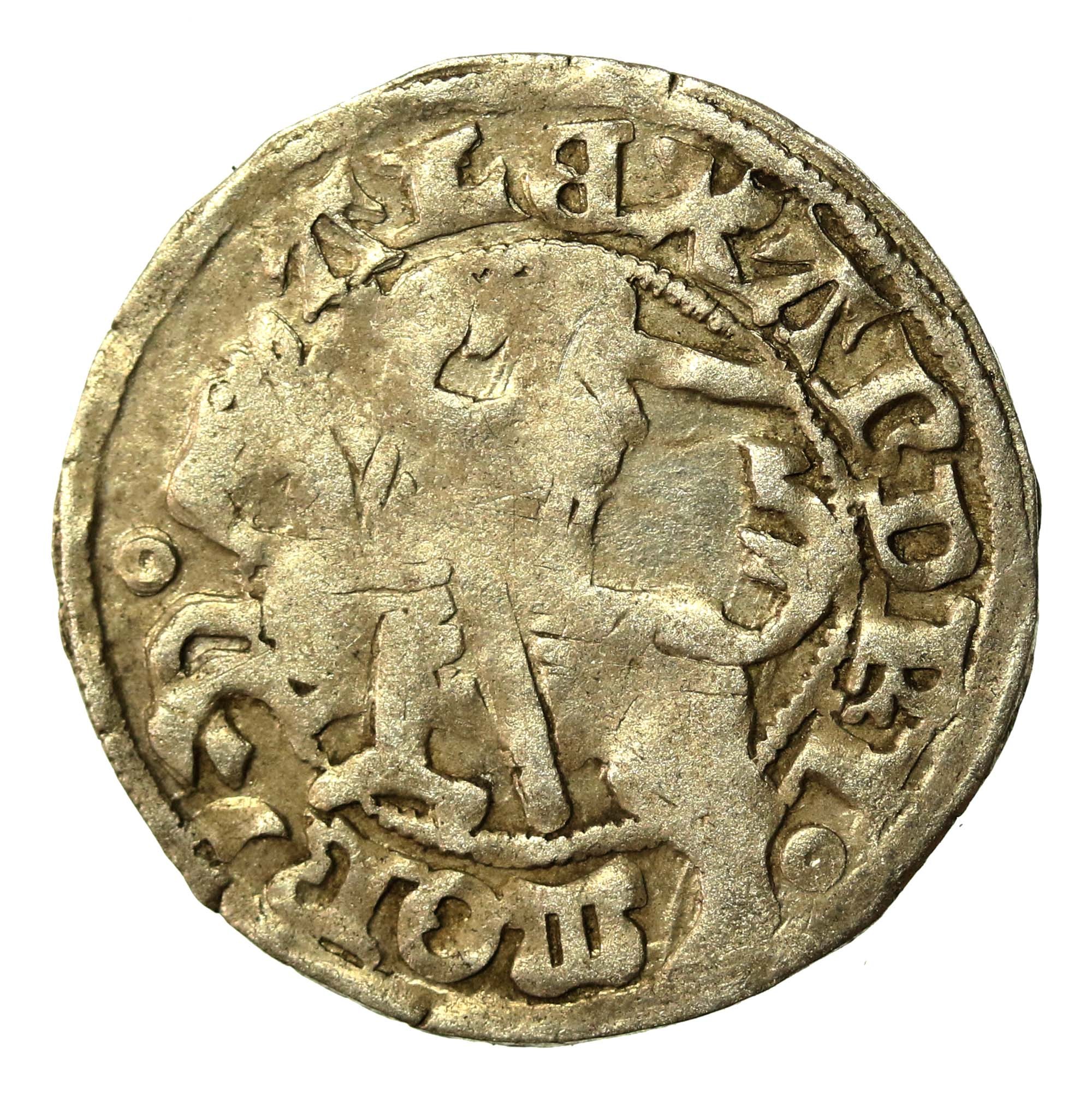 Aleksander Jagiellończyk, Półgrosz, Wilno - gotyk. Stan zachowania: 3+. Poprawnie zachowana moneta z patyną. Literatura: Kopicki 3123