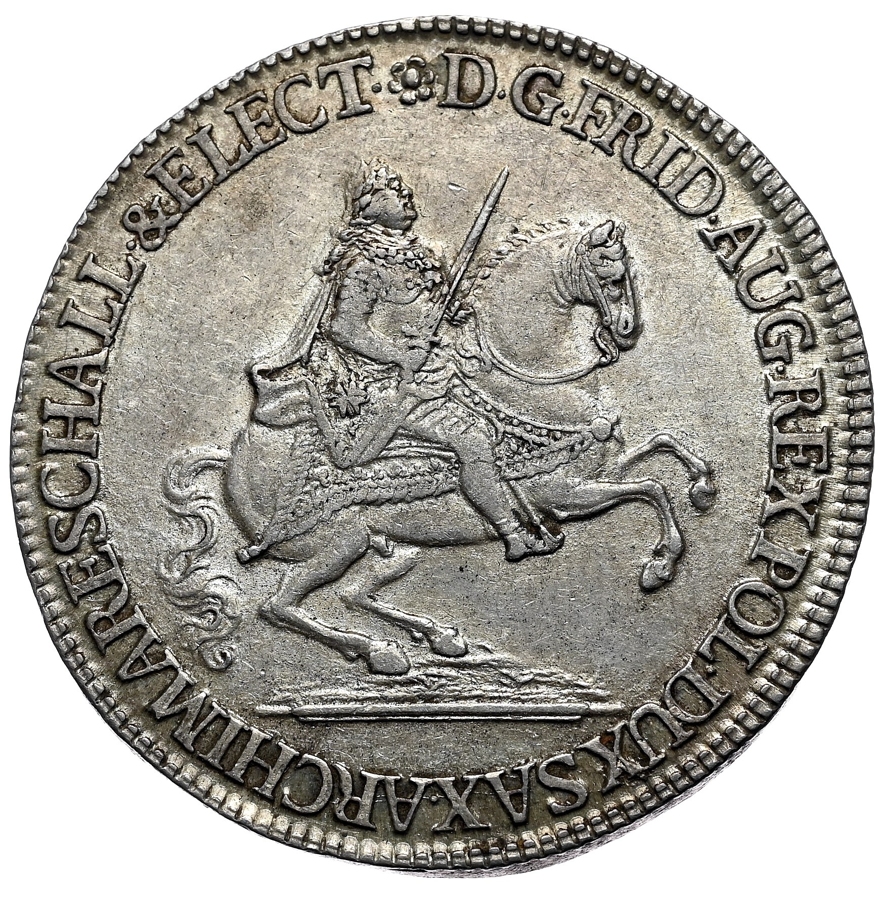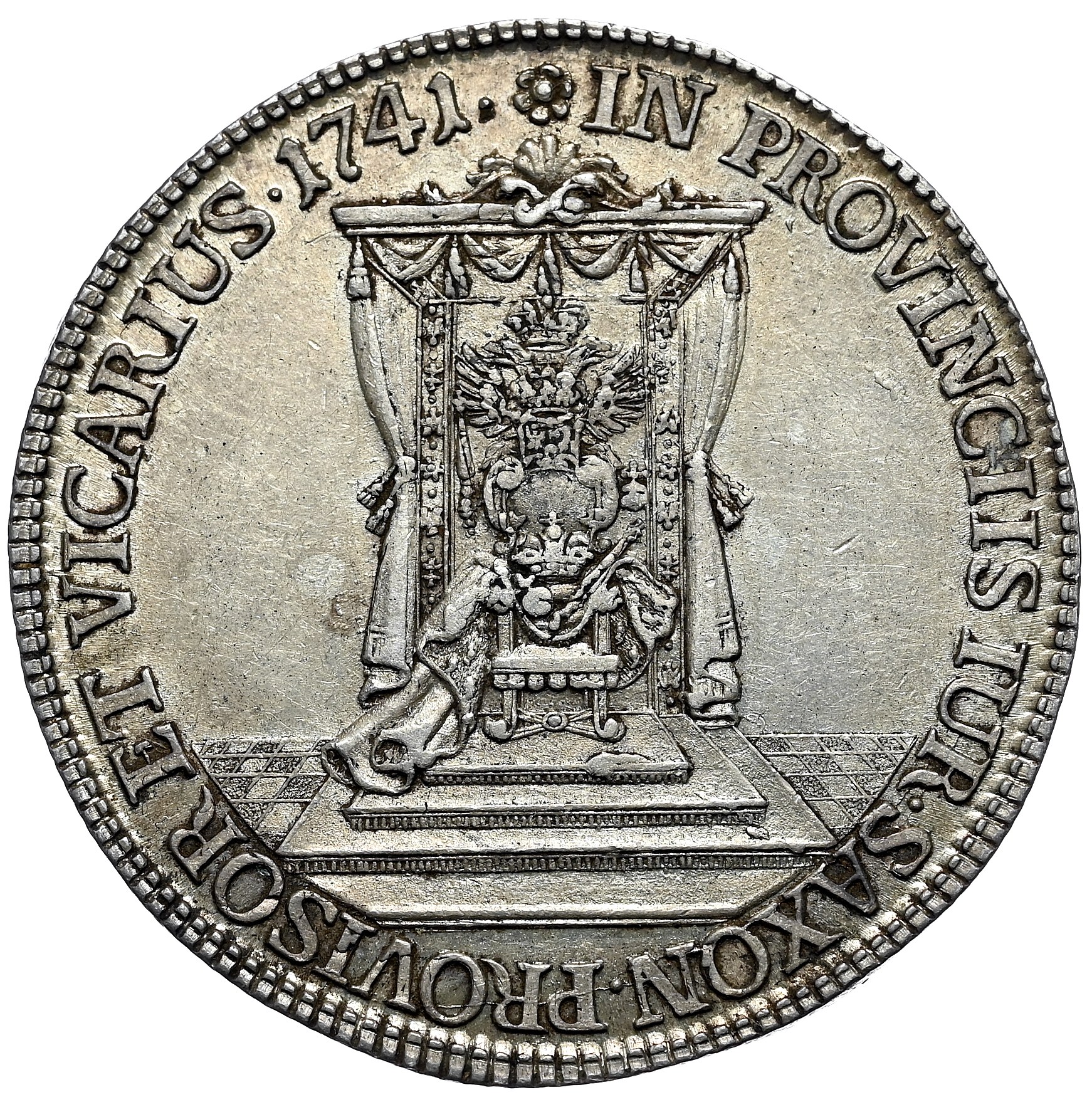 Półtalar pamiątkowy wybity dla uczczenia uzyskania przez Augusta III urzędu Wikariusza Świętego Cesarstwa Rzymskiego.
