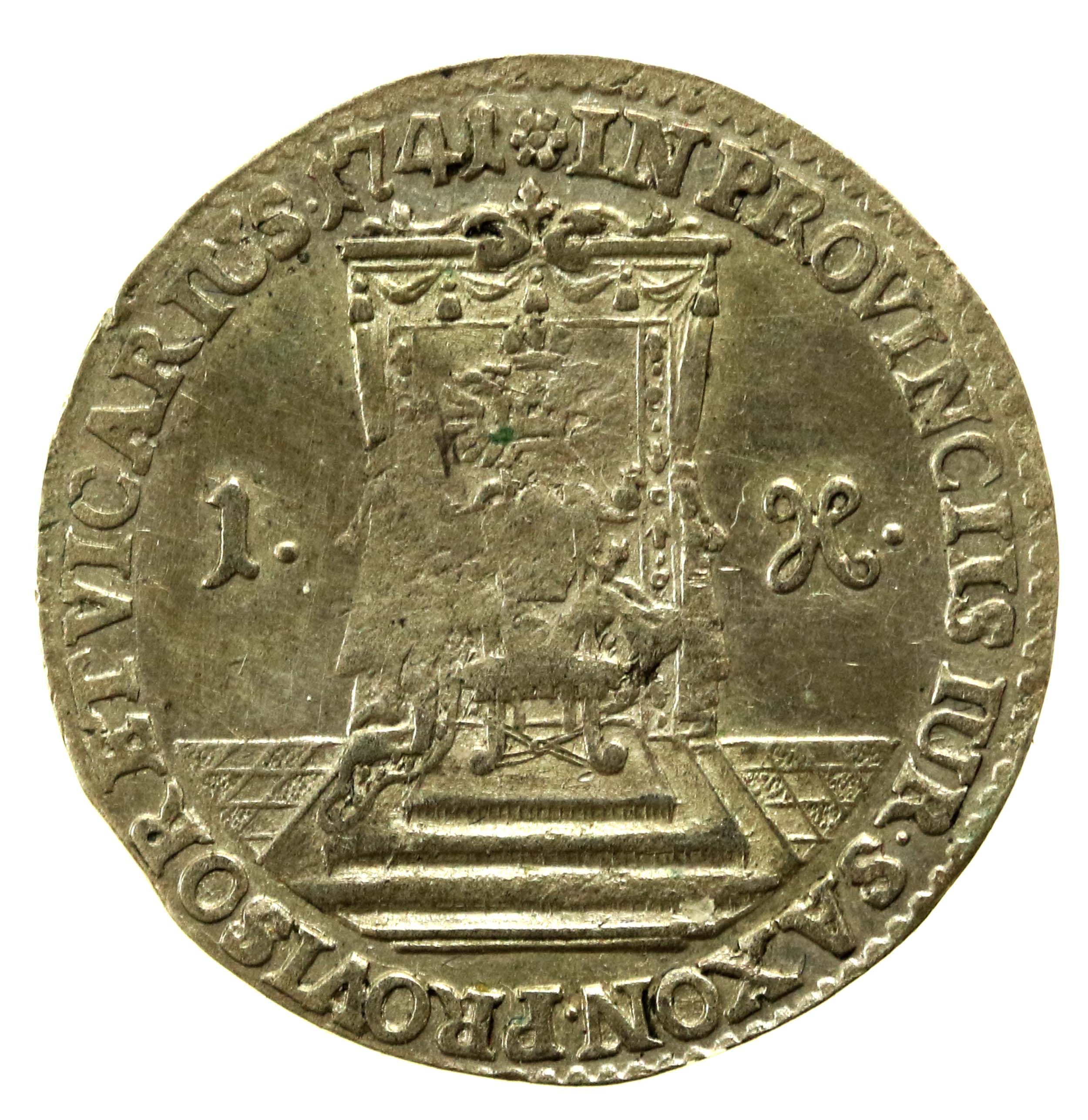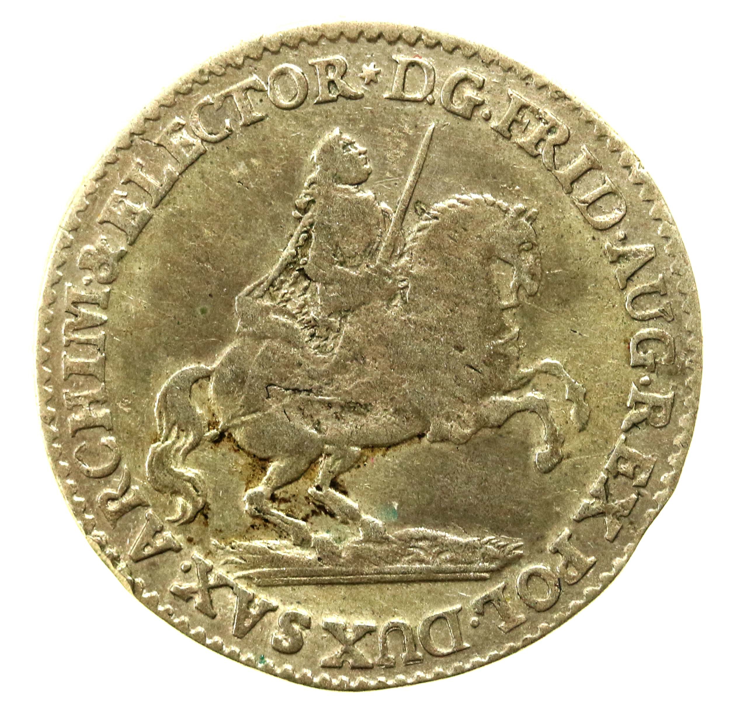 August III Sas, Grosz wikariacki 1741, Drezno. Stan zachowania 2-. Literatura: Kahnt 642, Kop. 11526 (R2)