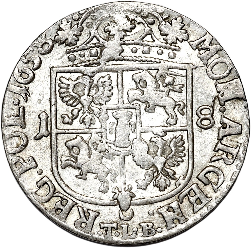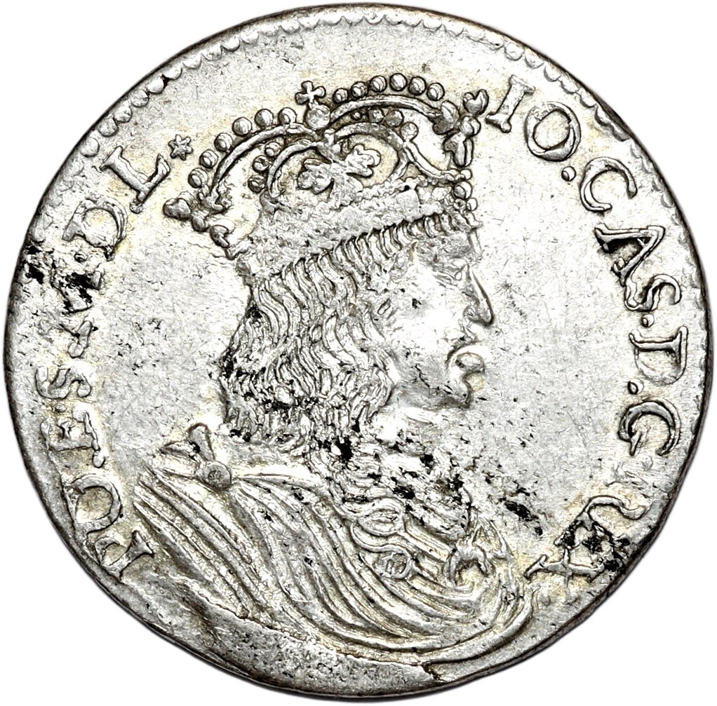 Rzadka odmiana z małym portretem królewskim, popularnie zwanym popiersiem Karola X Gustawa, będące w rzeczywistości Jana Kazimierza.