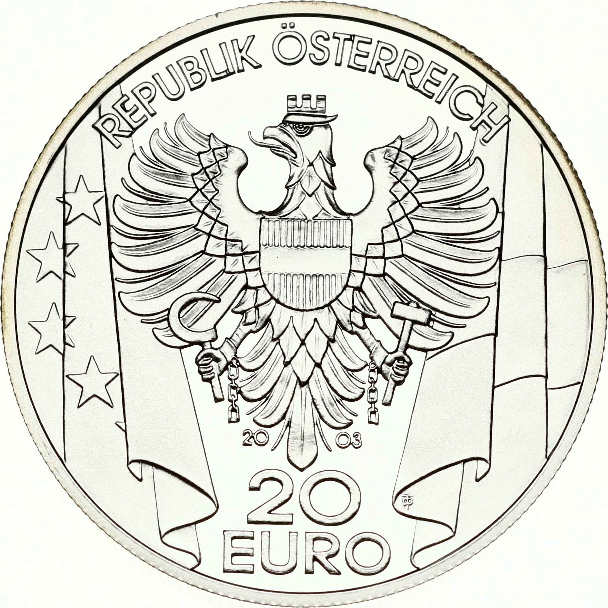 Austria 20 Euro 2003 Reconstruction. WW2 Reconstruction Plan. Silver .900, 20.00g. KM-3107. With Box & Certificate