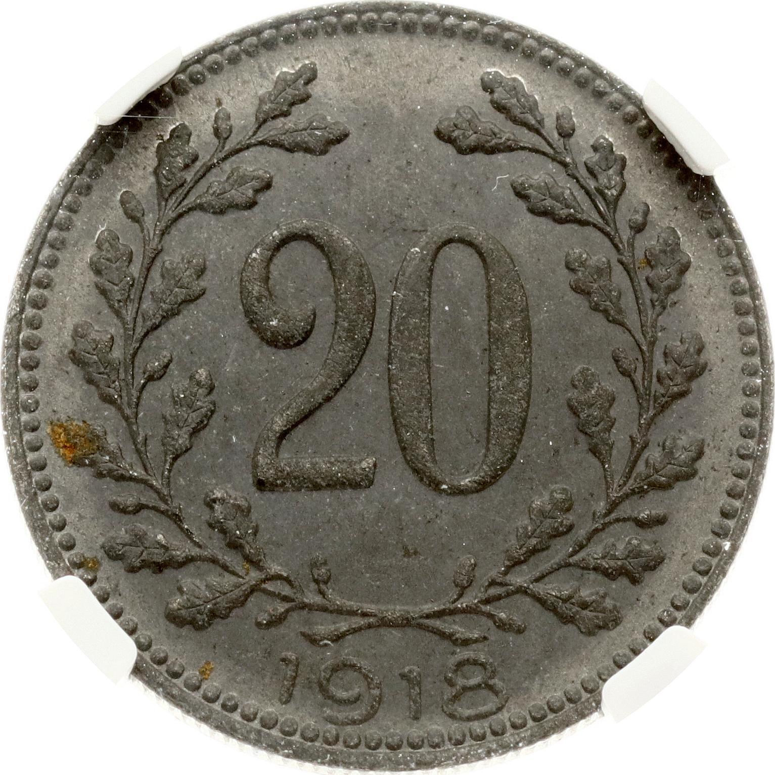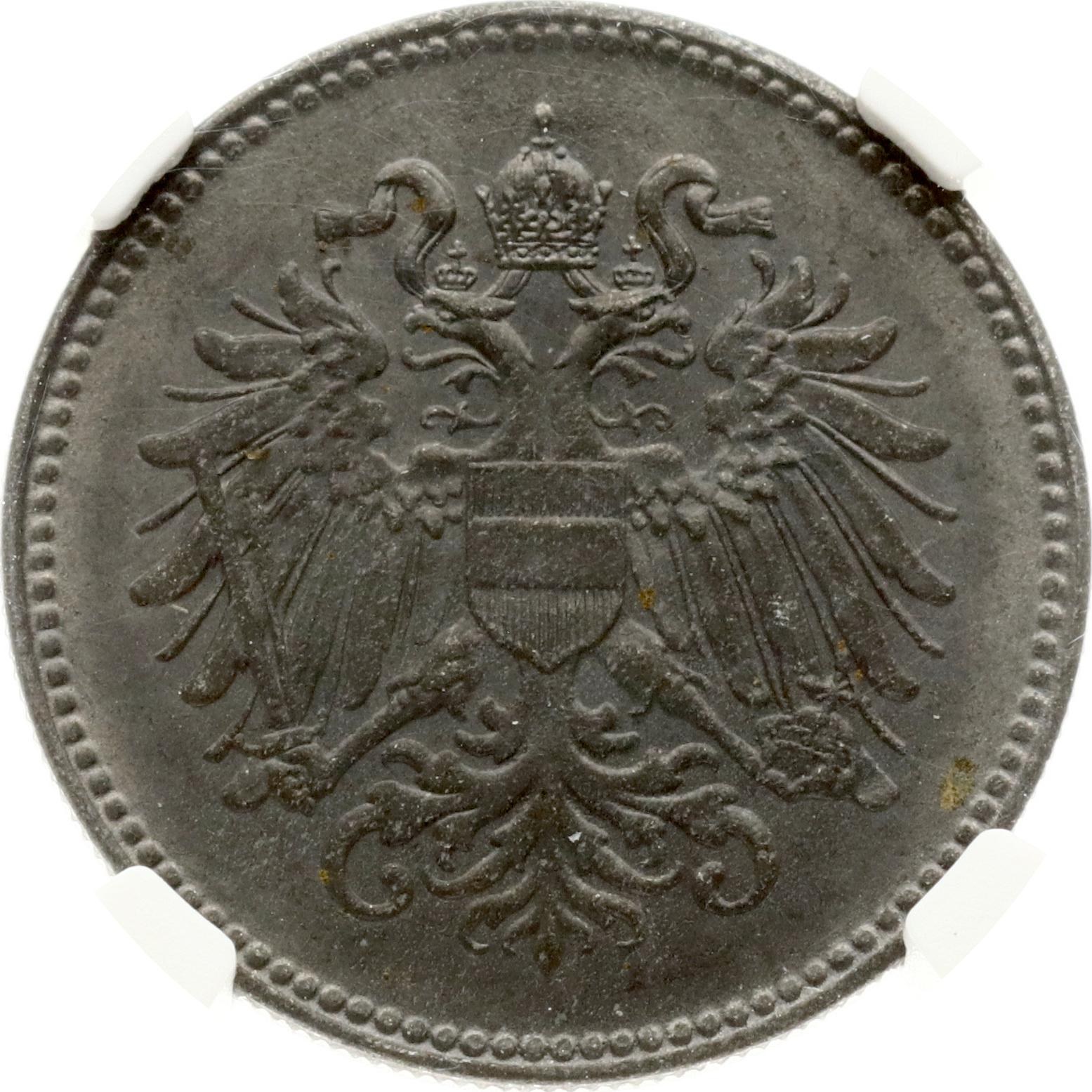 Austria. Charles I (1916-1918). 20 Heller 1918. Iron. KM 2826. NGC MS 64. Only 1 coin in higher grade.