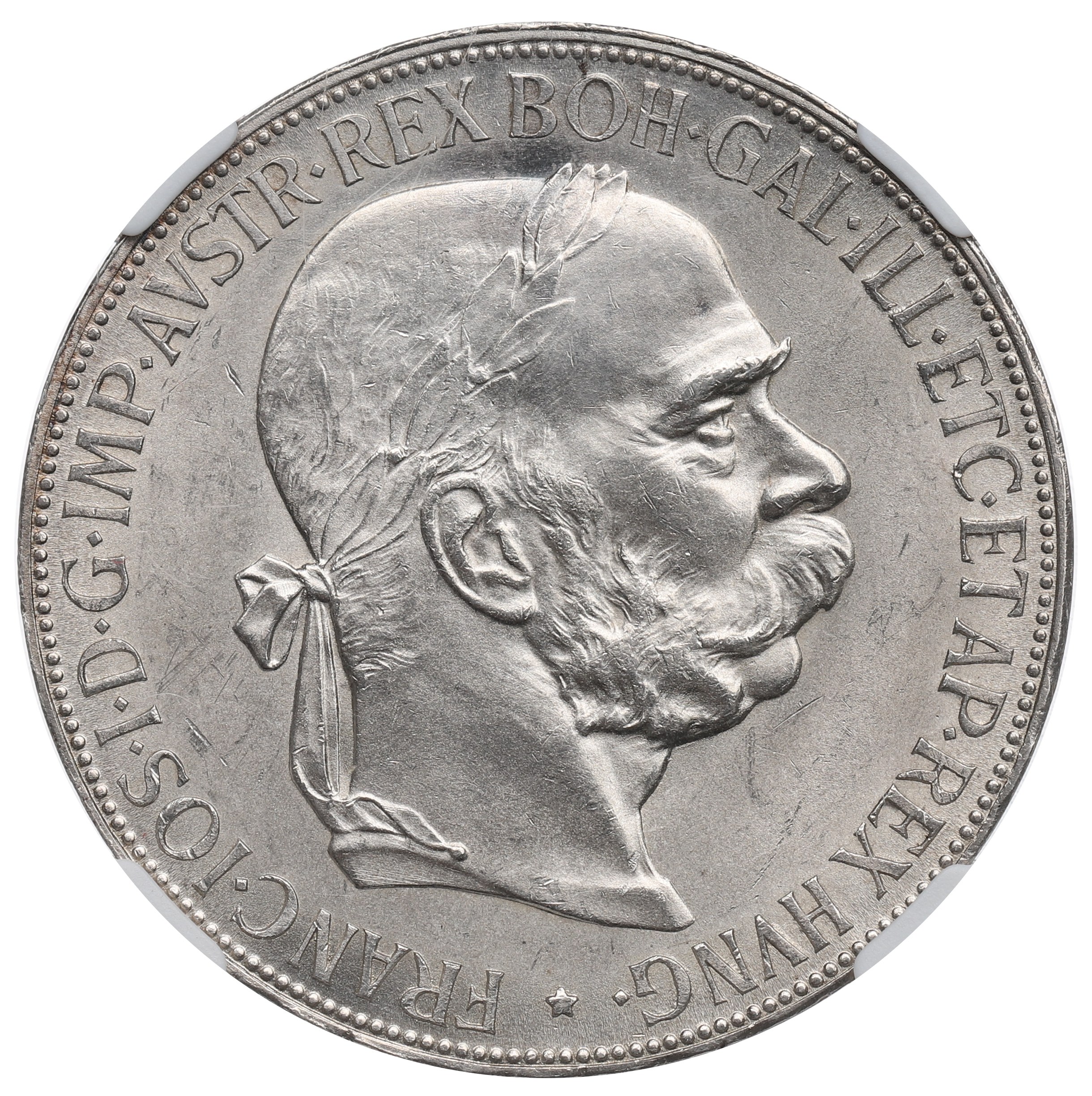 Obverse: Franz Joseph bust (right) with laurel crown