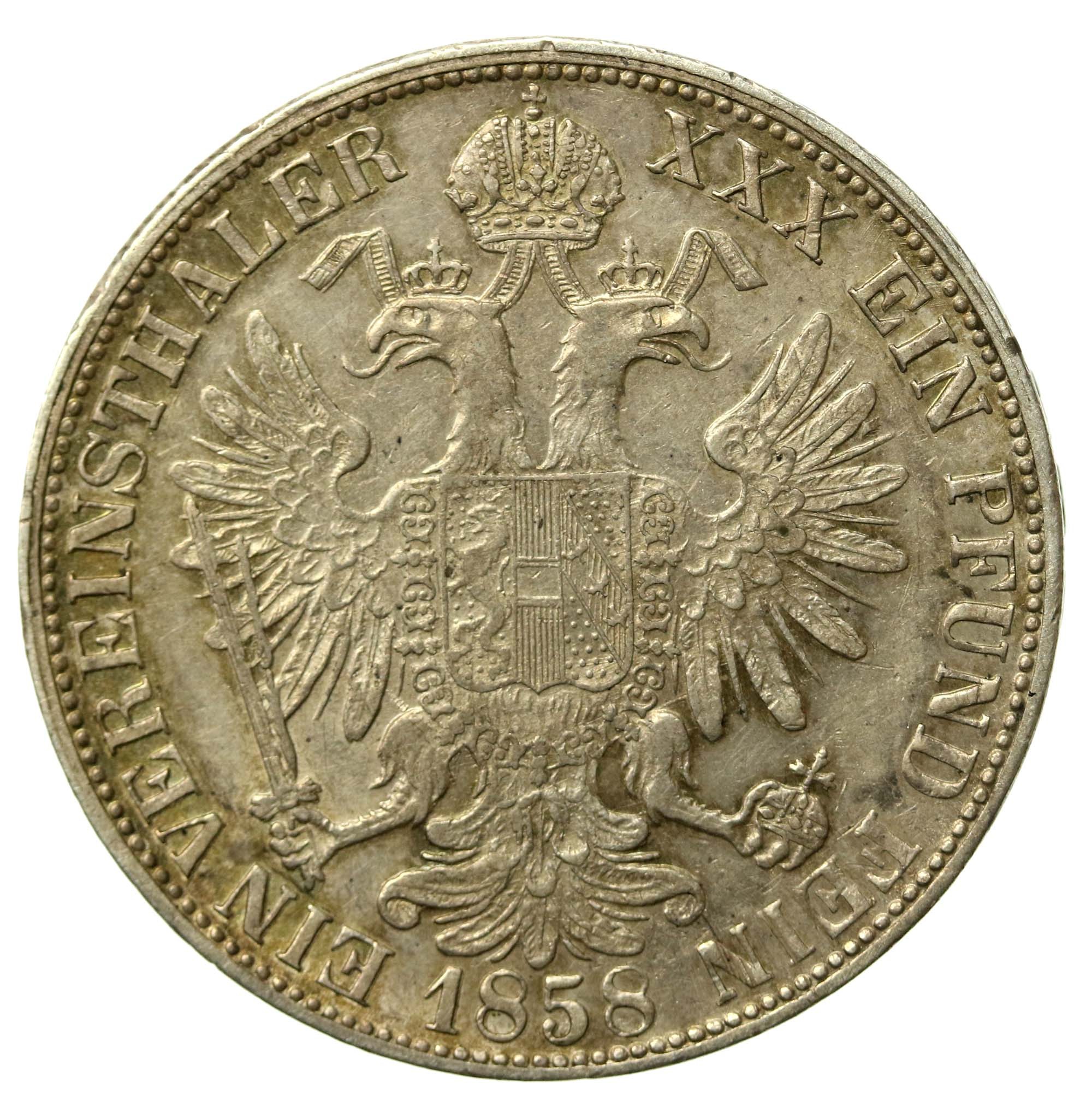 Austro-Węgry, Franciszek Józef, Talar 1858. Medional. Stan zachowania 2-/2. Dobrze zachowana moneta z połyskiem