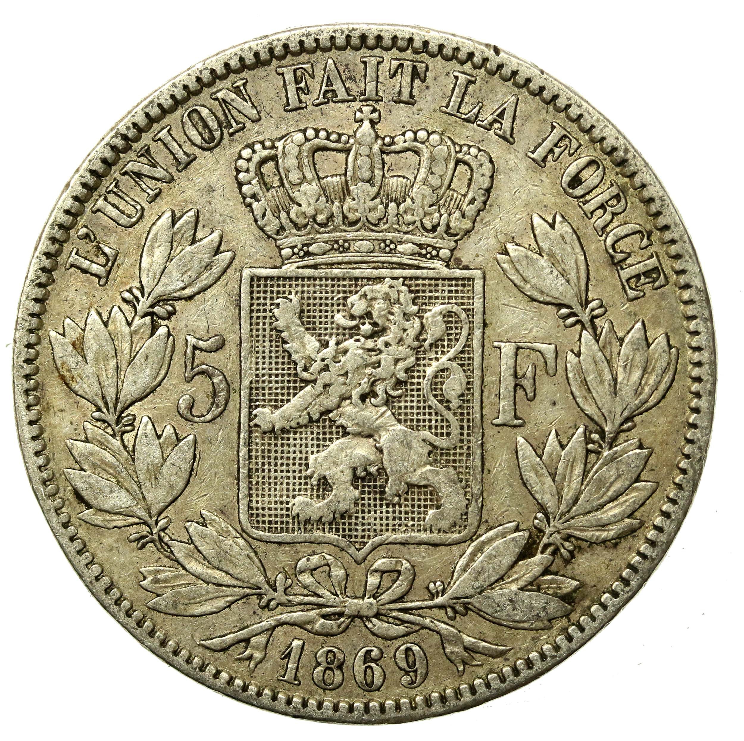 Belgia, Leopold II, 5 franków 1869
